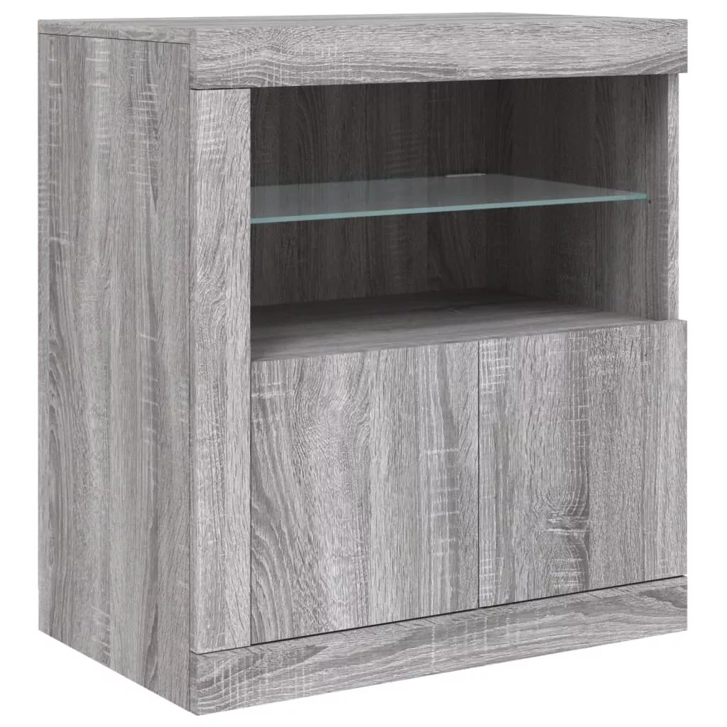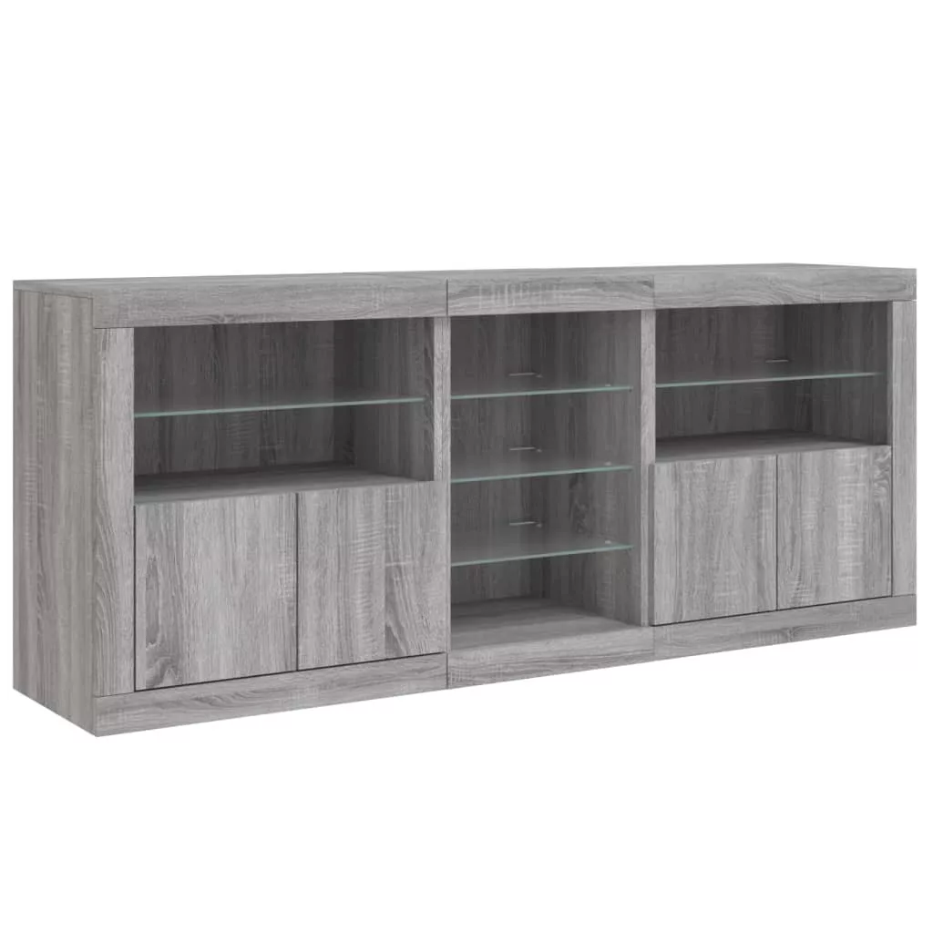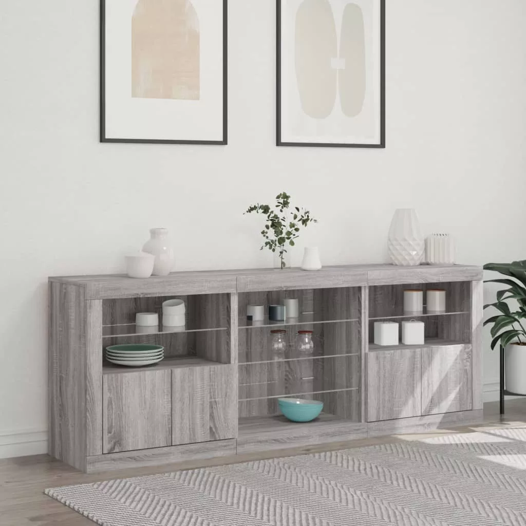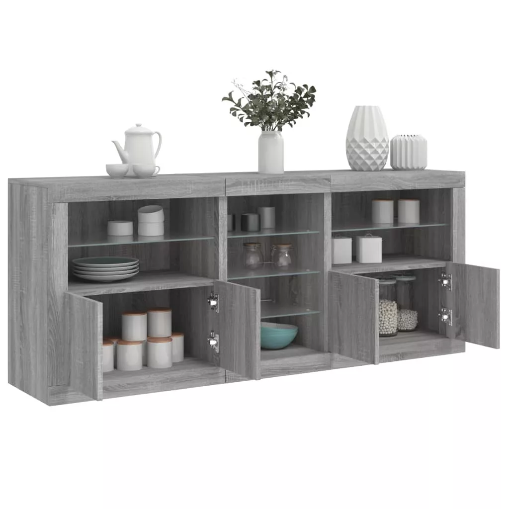 szürke sonoma tálalószekrény LED-világítással 181,5x37x67 cm