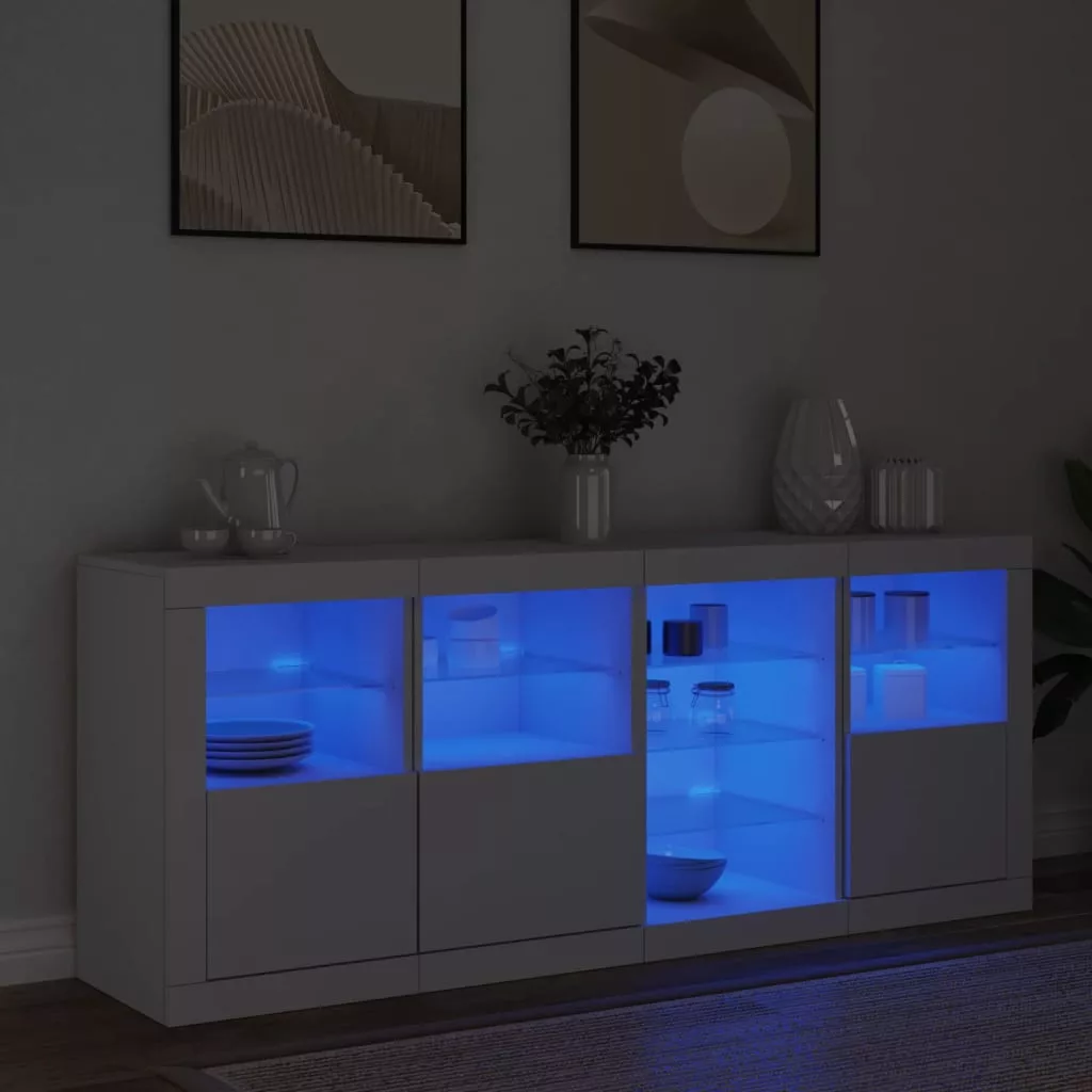 fehér tálalószekrény LED-világítással 164 x 37 x 67 cm