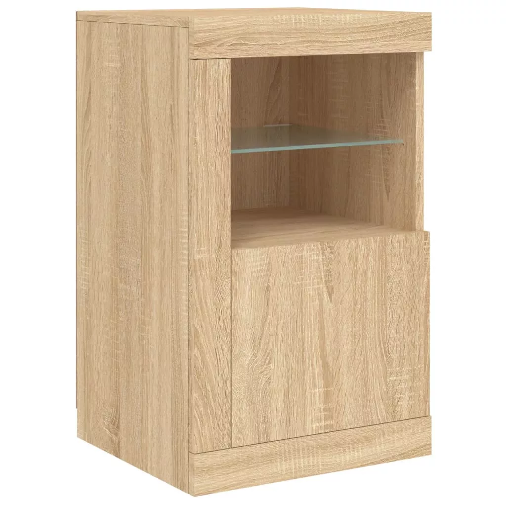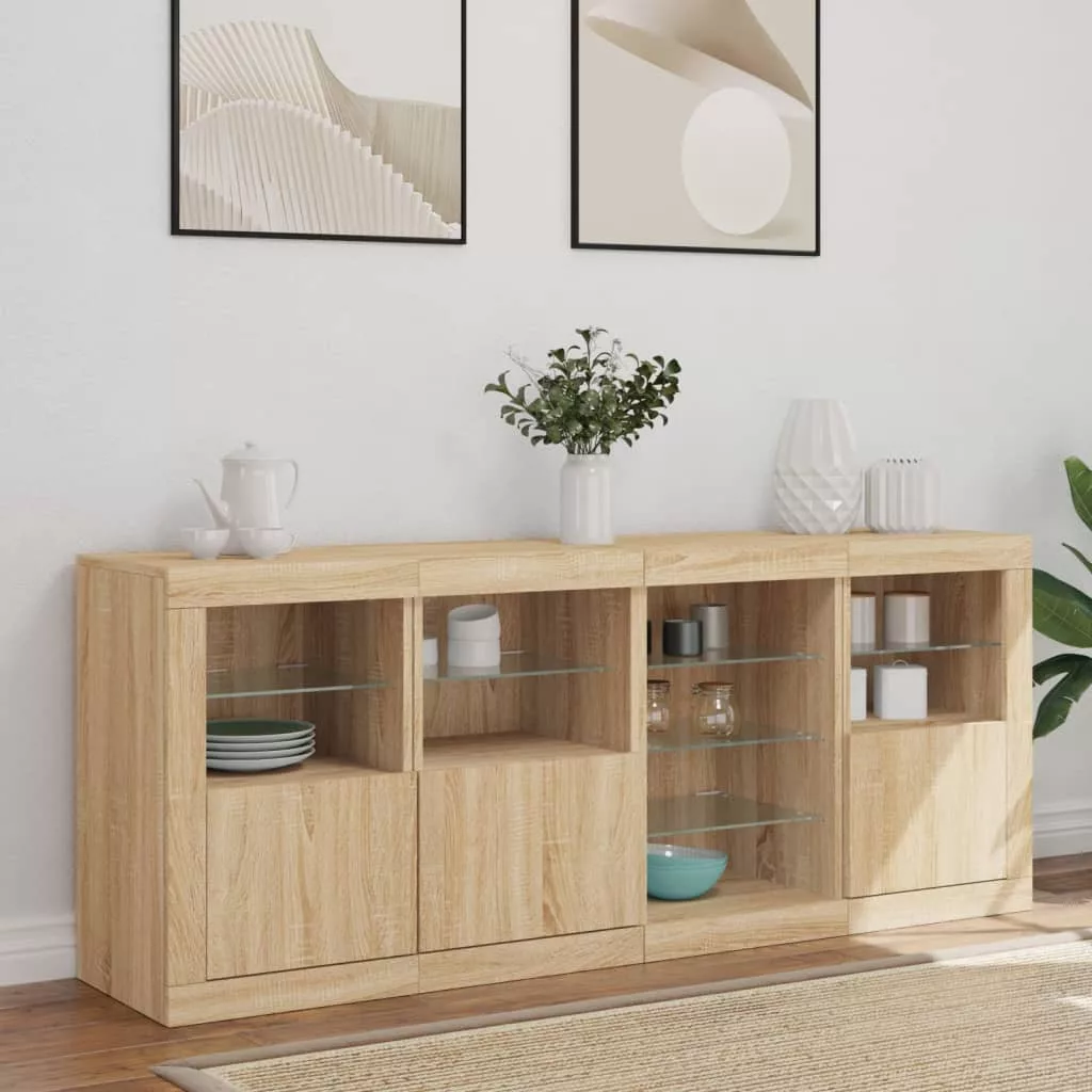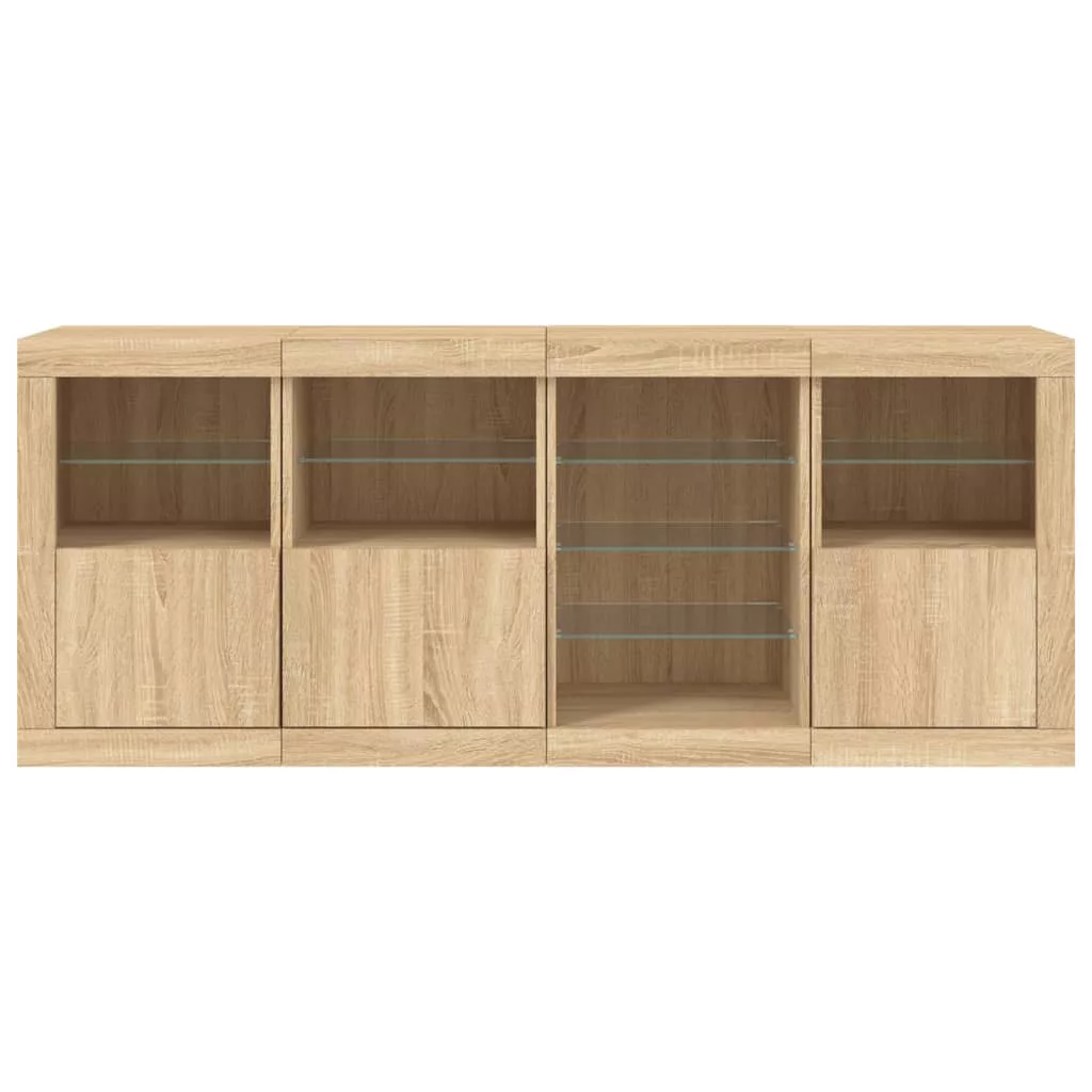 sonoma tölgy színű tálalószekrény LED-világítással 164x37x67 cm