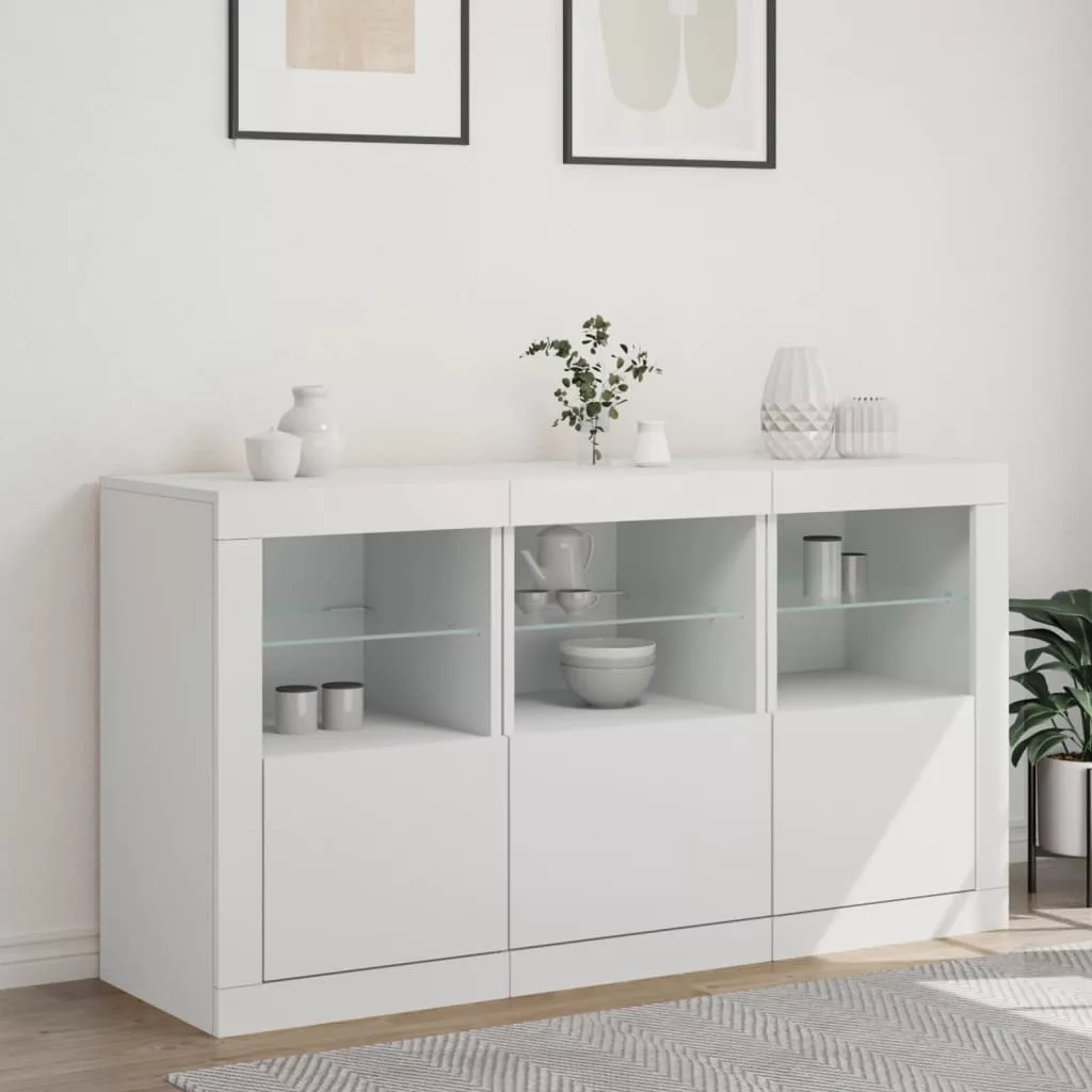 fehér tálalószekrény LED-világítással 123 x 37 x 67 cm