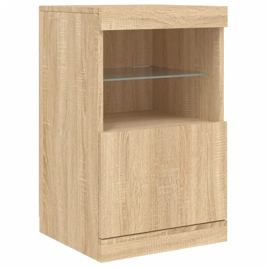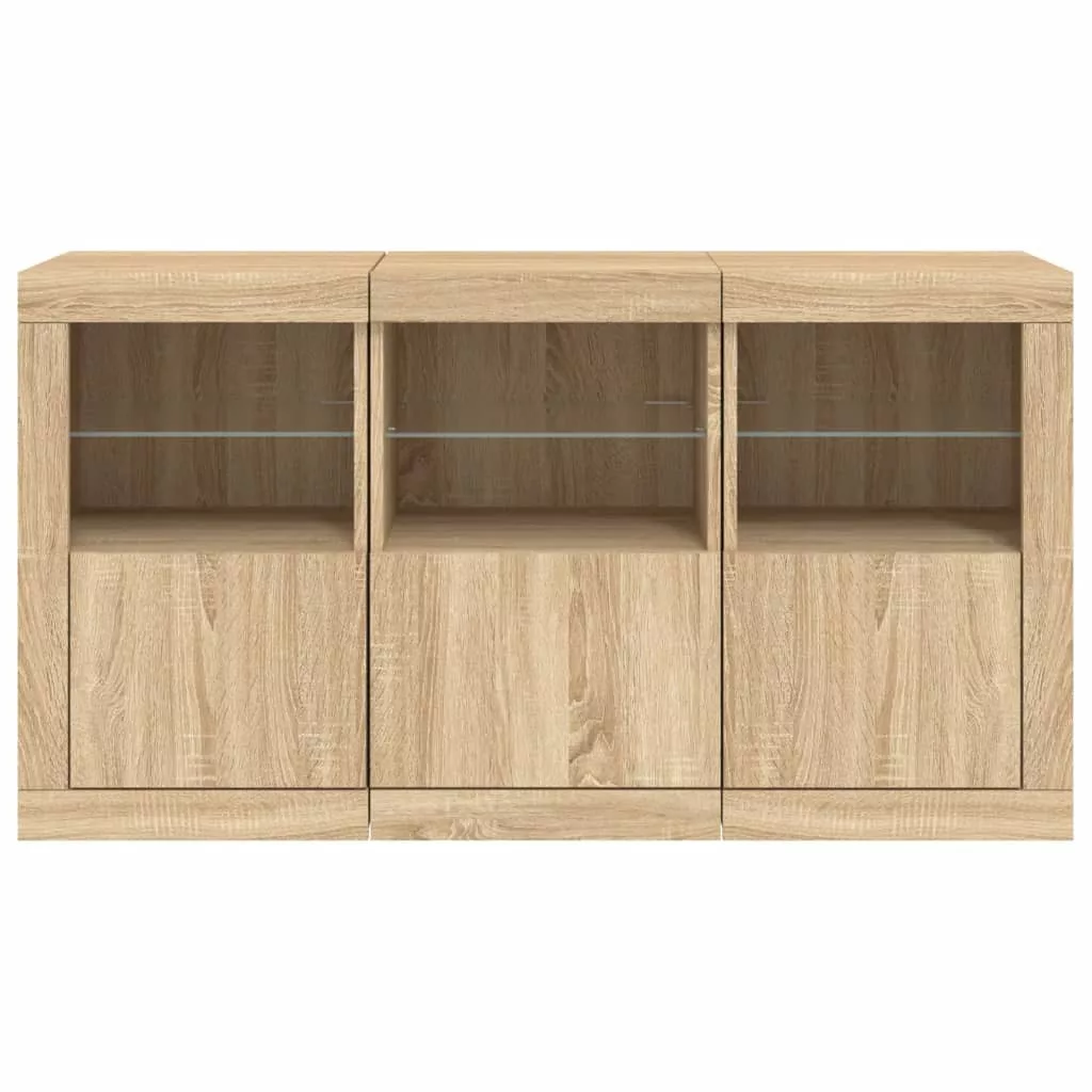sonoma tölgy színű tálalószekrény LED-világítással 123x37x67 cm