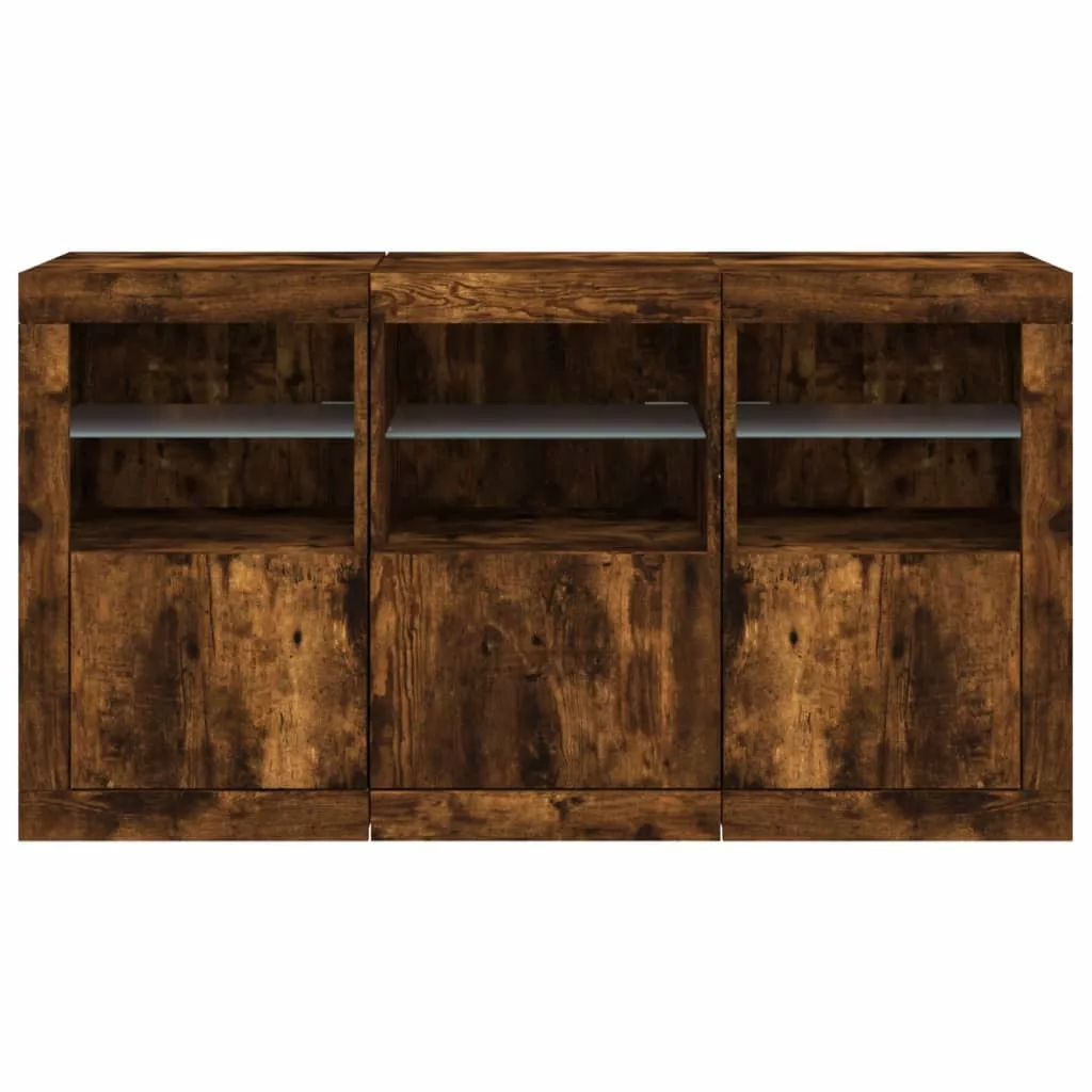 füstös tölgy színű tálalószekrény LED-ekkel 123 x 37 x 67 cm