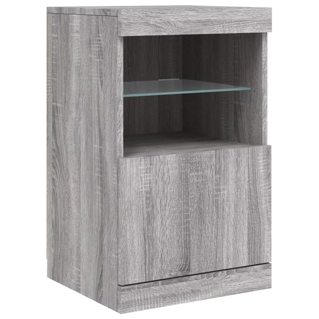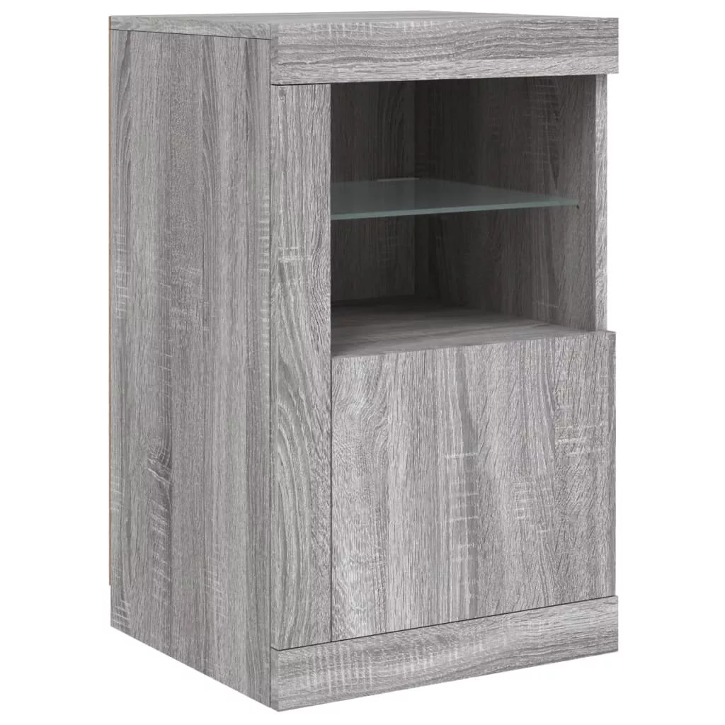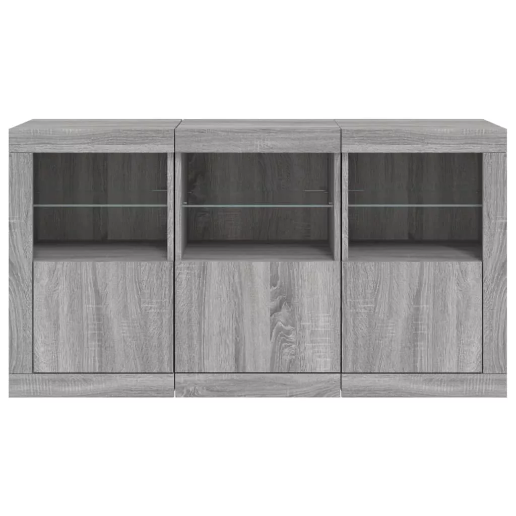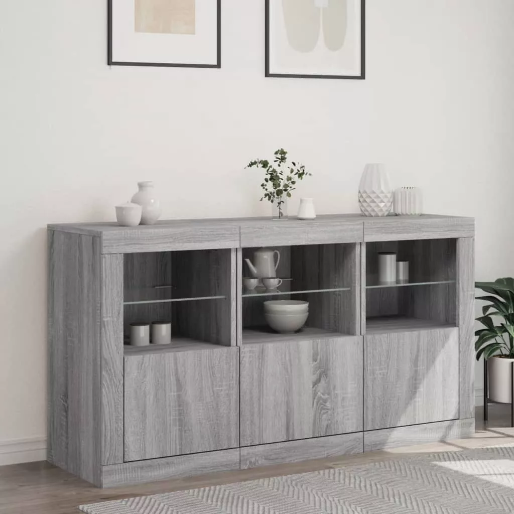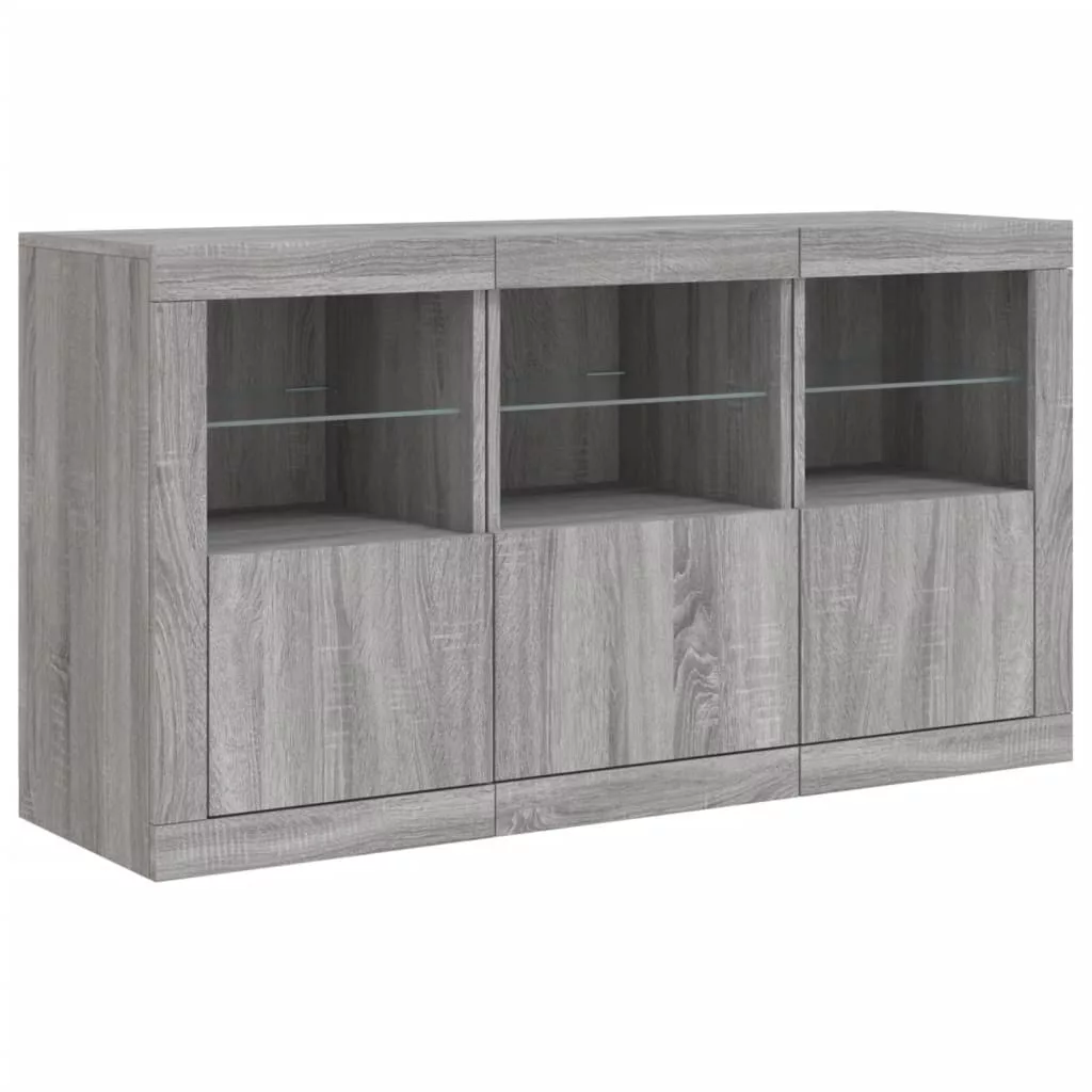 szürke sonoma tálalószekrény LED-világítással 123 x 37 x 67 cm