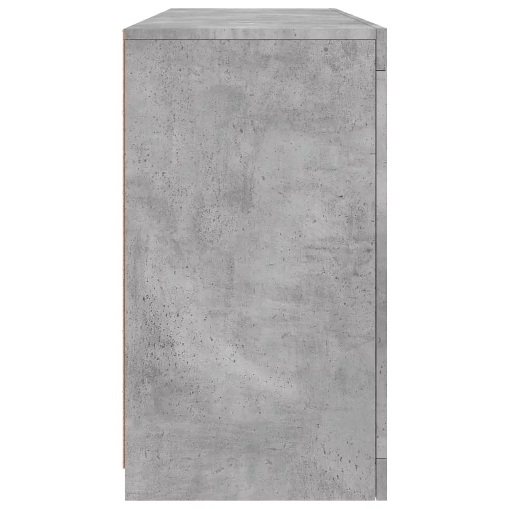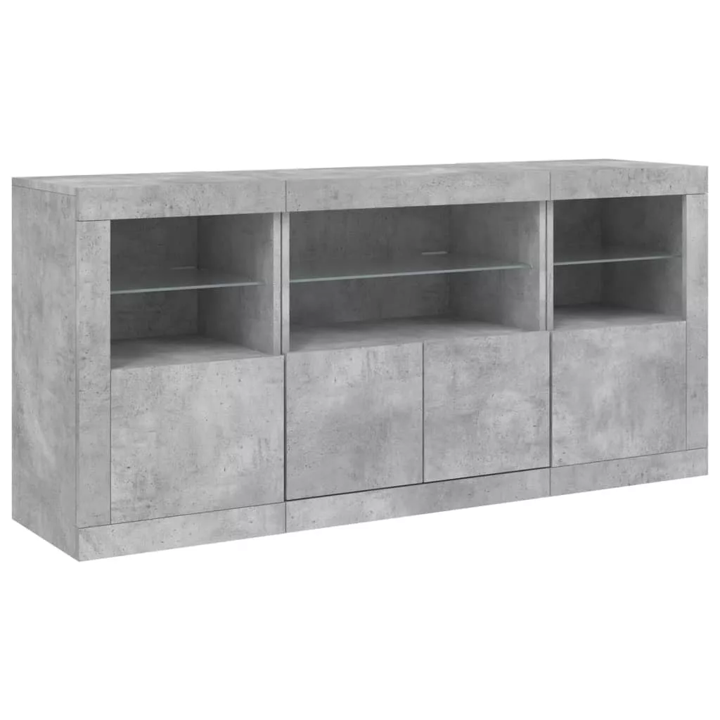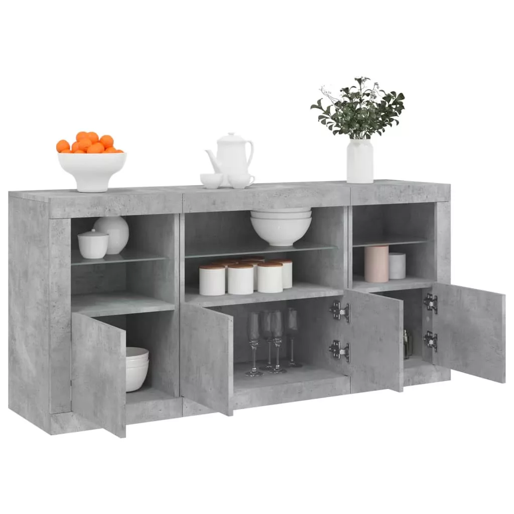 betonszürke tálalószekrény LED-világítással 142,5 x 37 x 67 cm