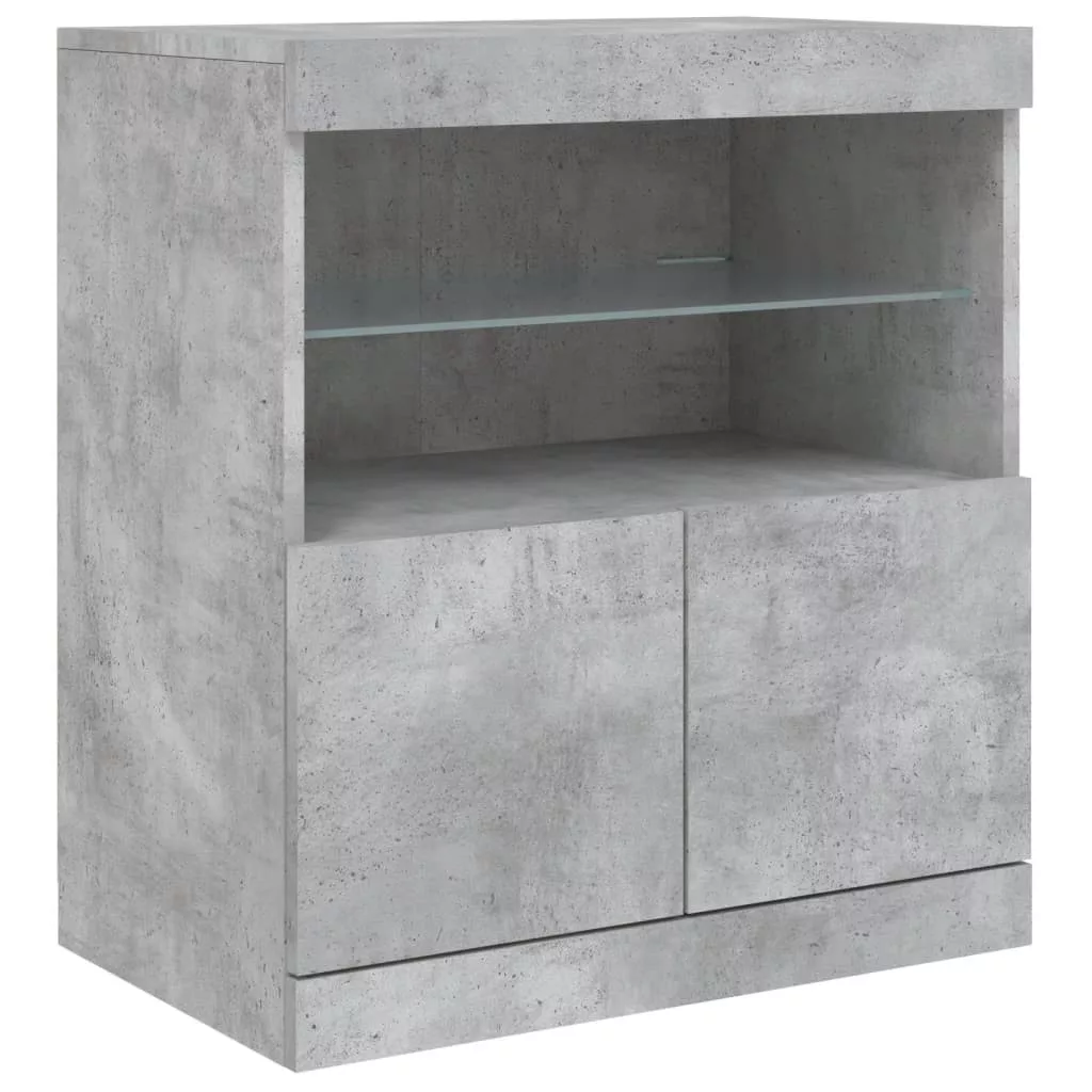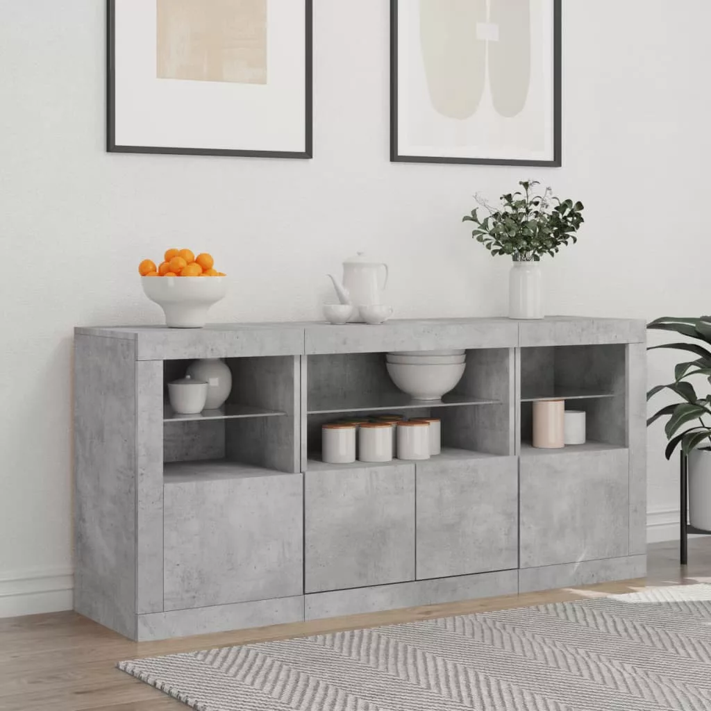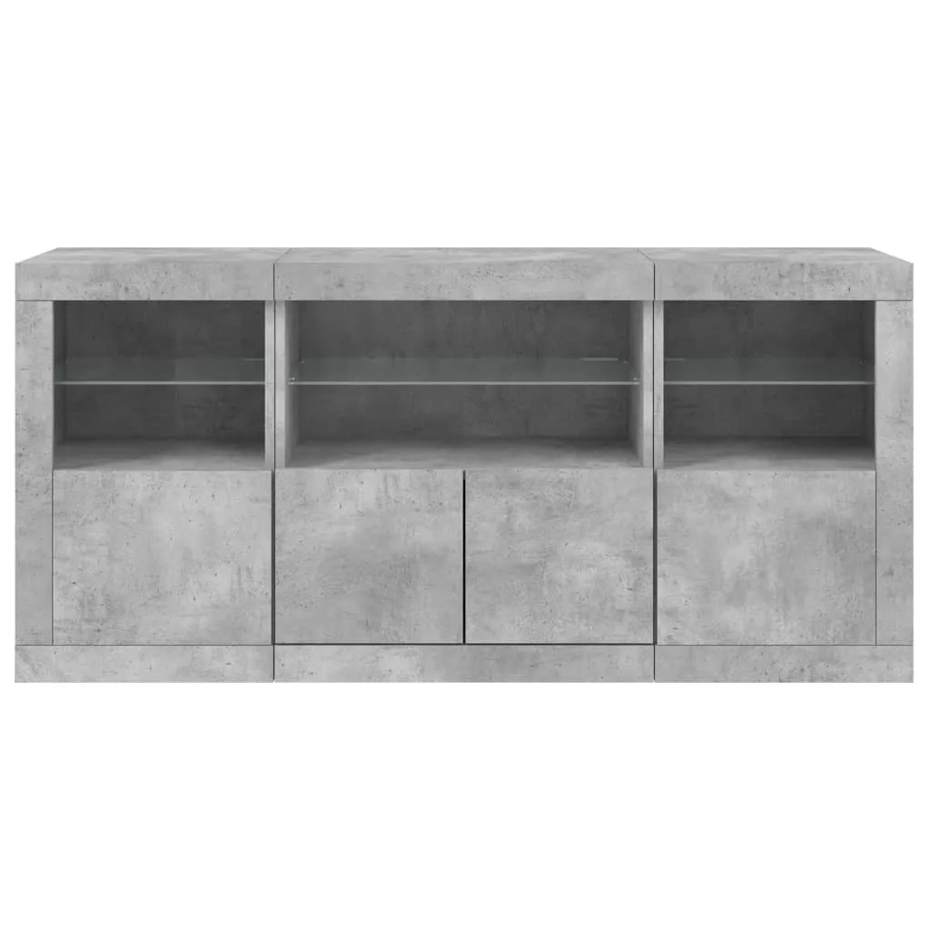 betonszürke tálalószekrény LED-világítással 142,5 x 37 x 67 cm