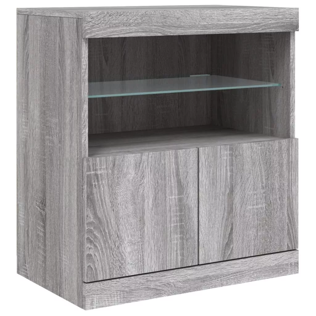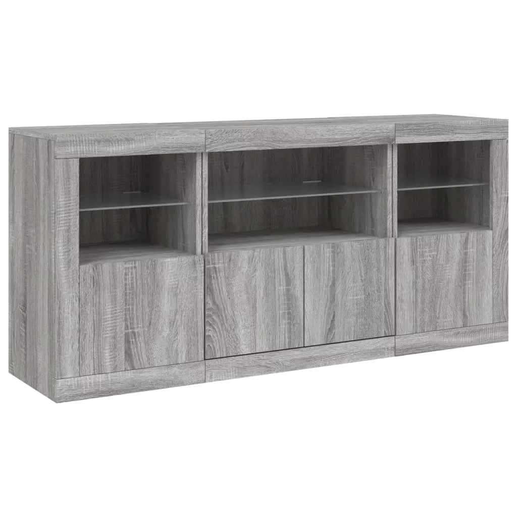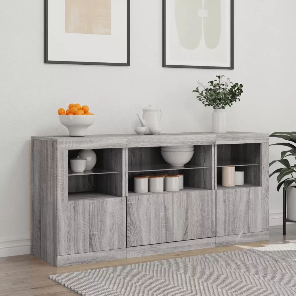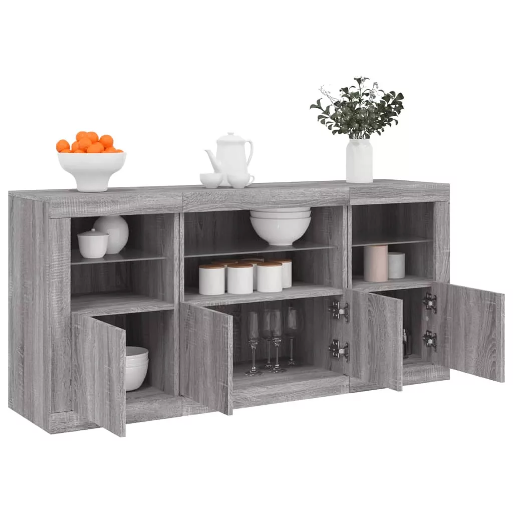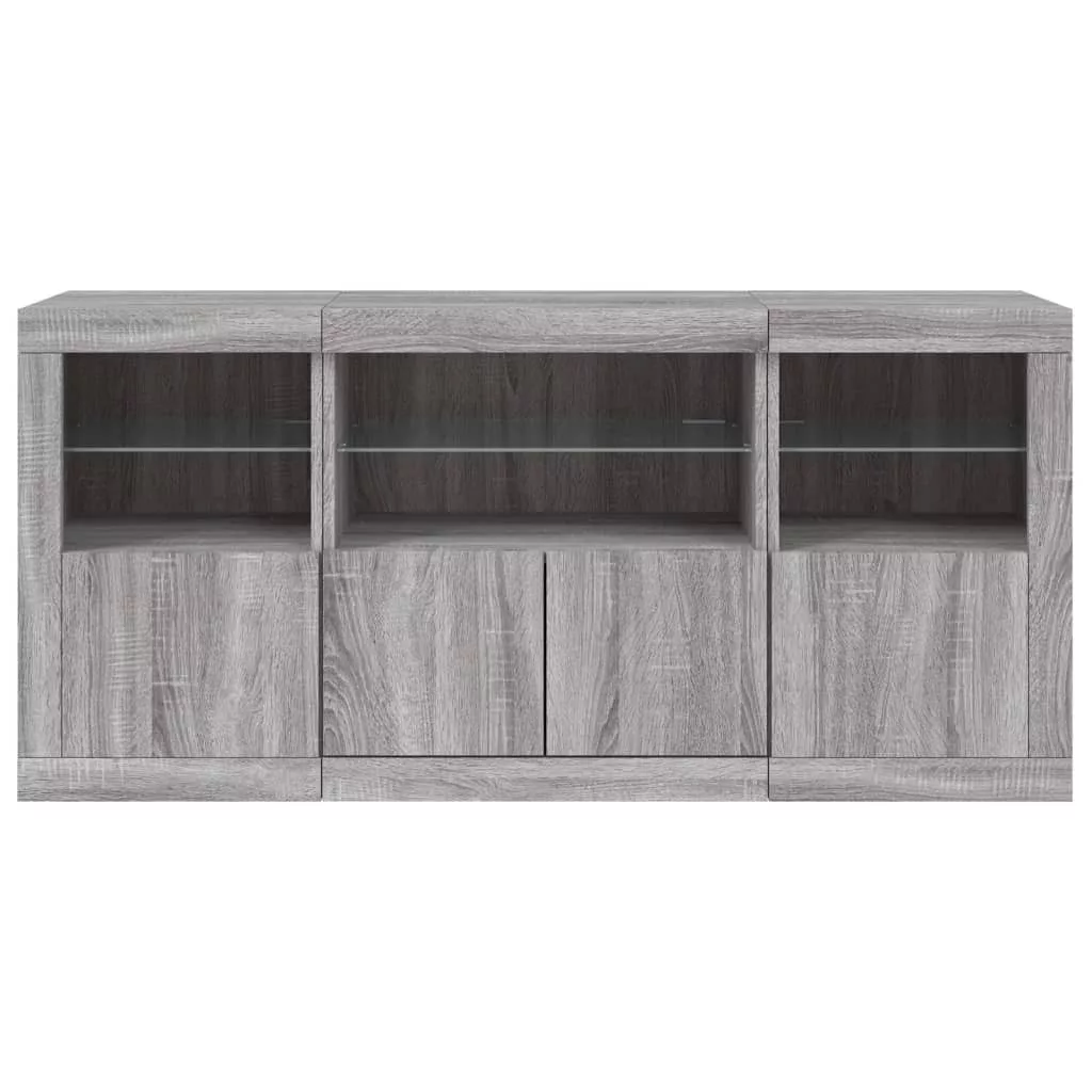 szürke sonoma tálalószekrény LED-világítással 142,5x37x67 cm