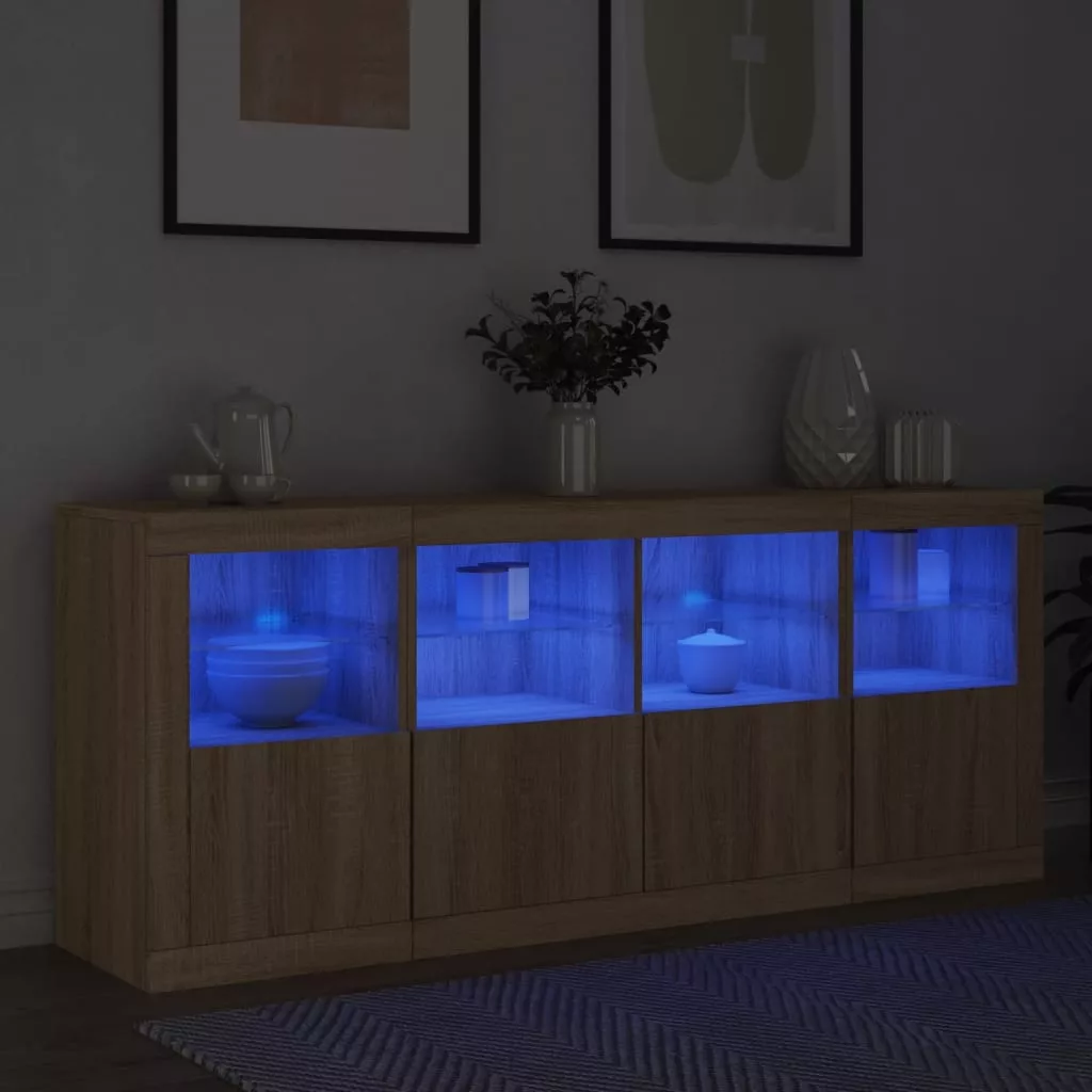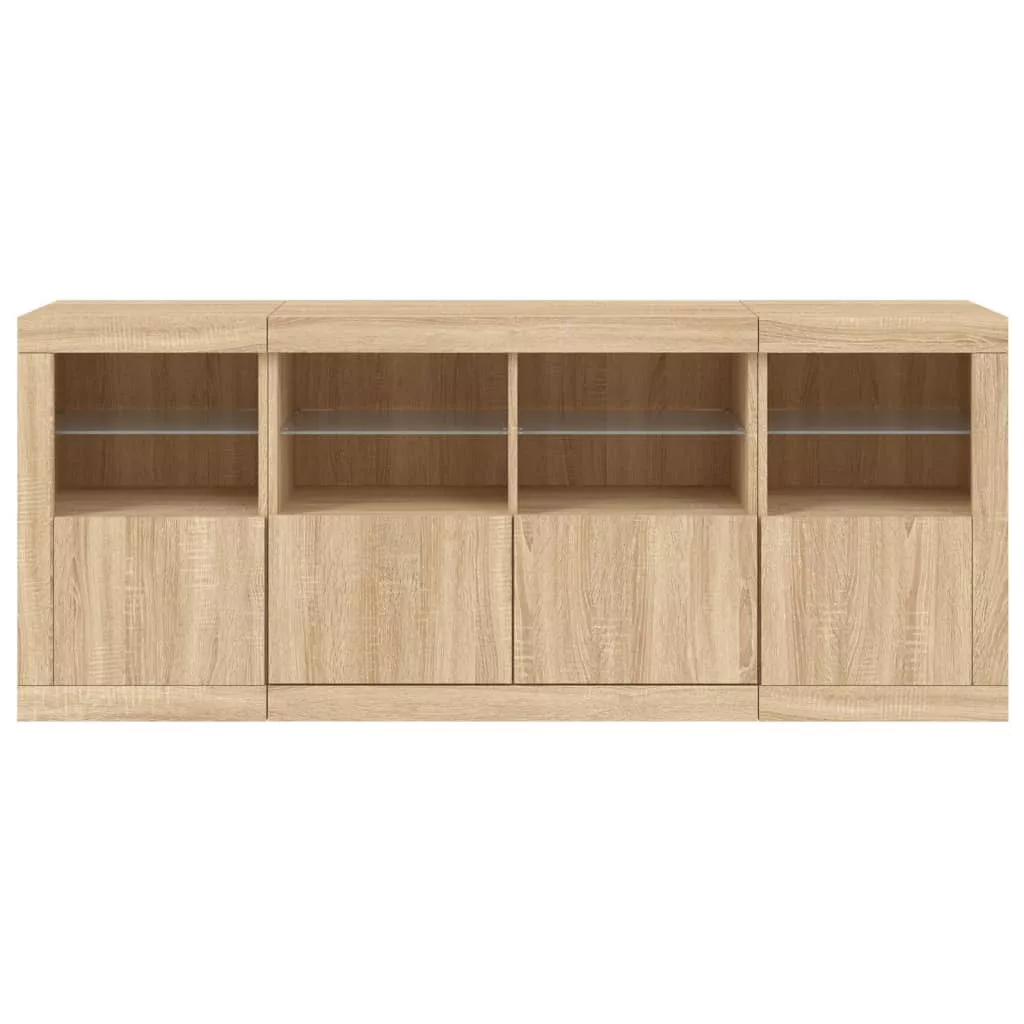 sonoma tölgy színű tálalószekrény LED-világítással 163x37x67 cm