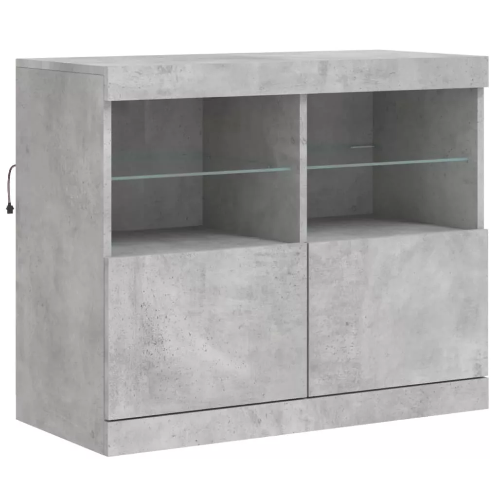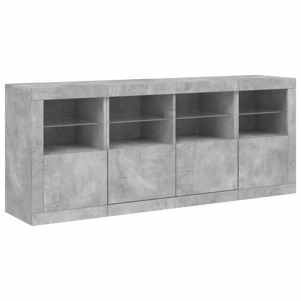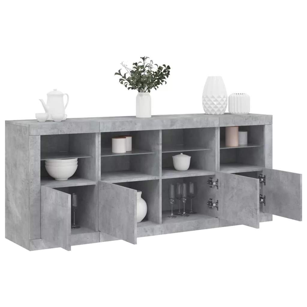 betonszürke tálalószekrény LED-világítással 163 x 37 x 67 cm
