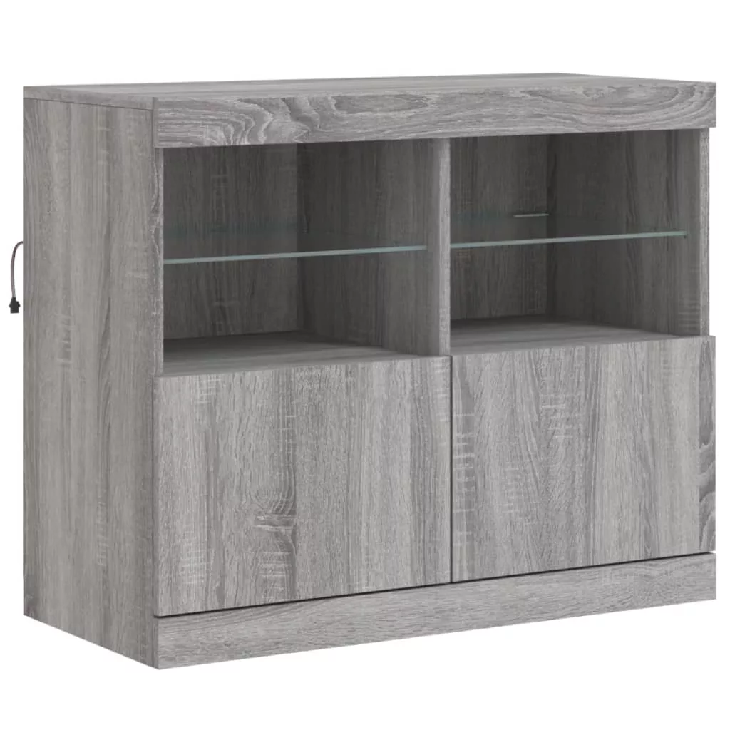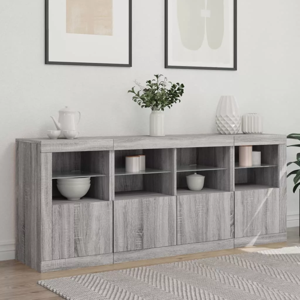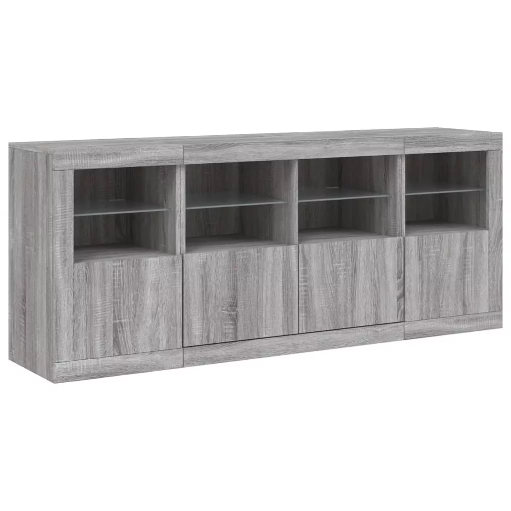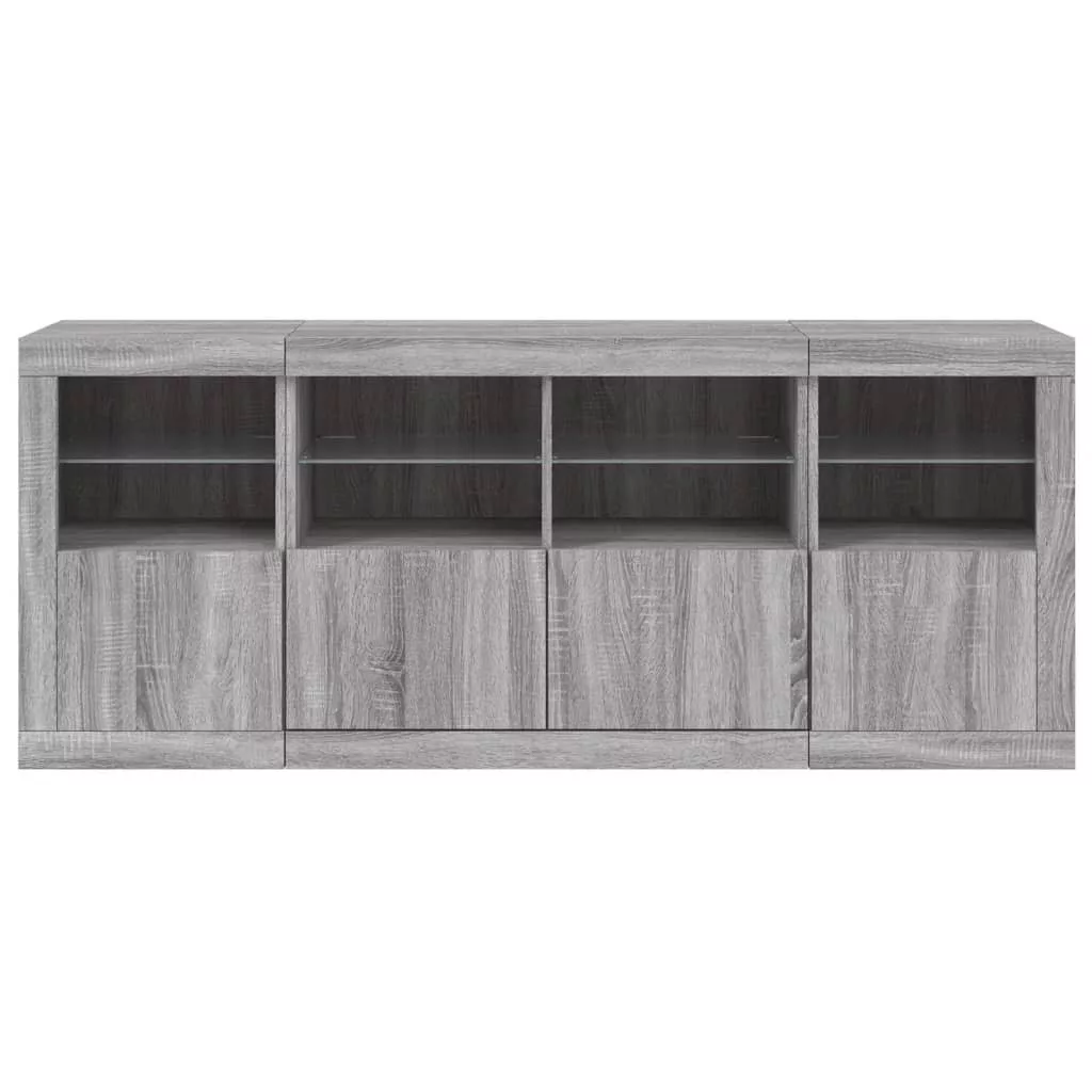 szürke sonoma tálalószekrény LED-világítással 163x37x67 cm