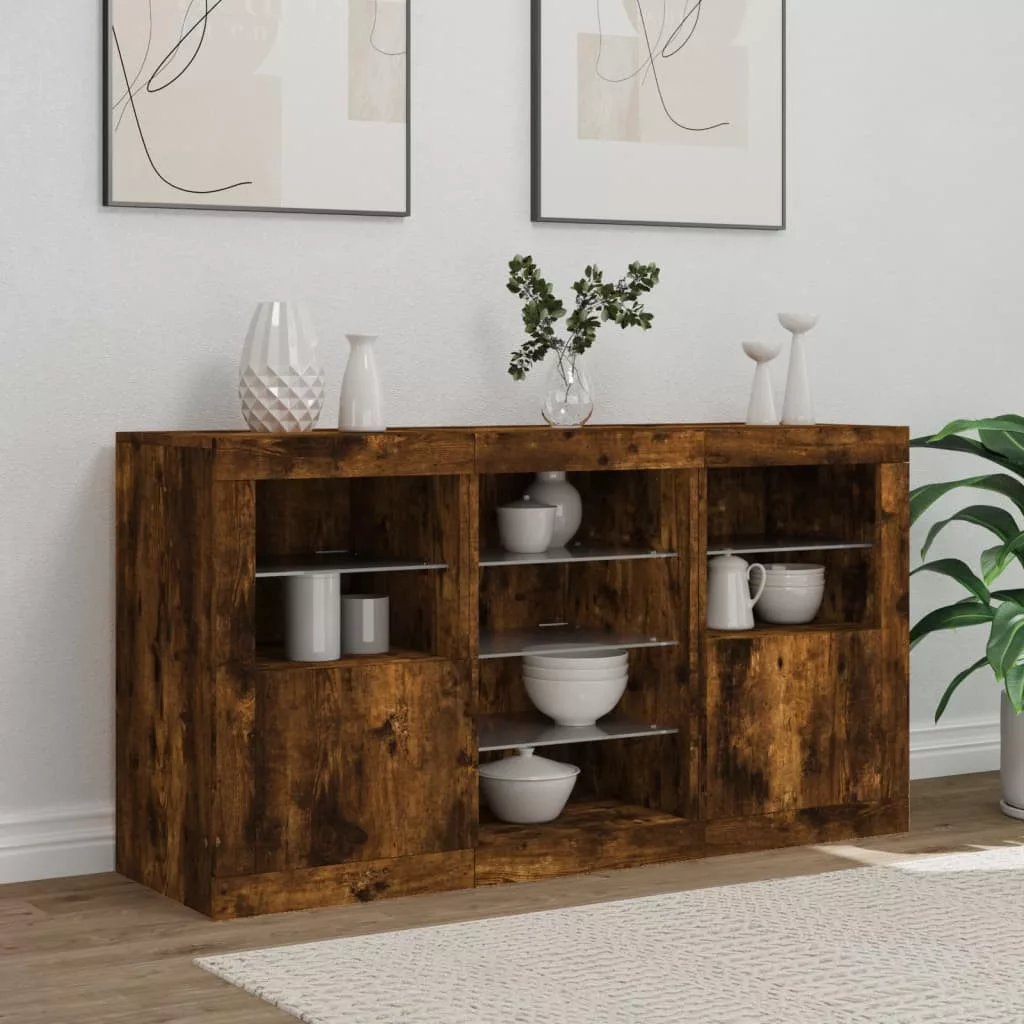 füstös tölgy színű tálalószekrény LED-ekkel 123 x 37 x 67 cm
