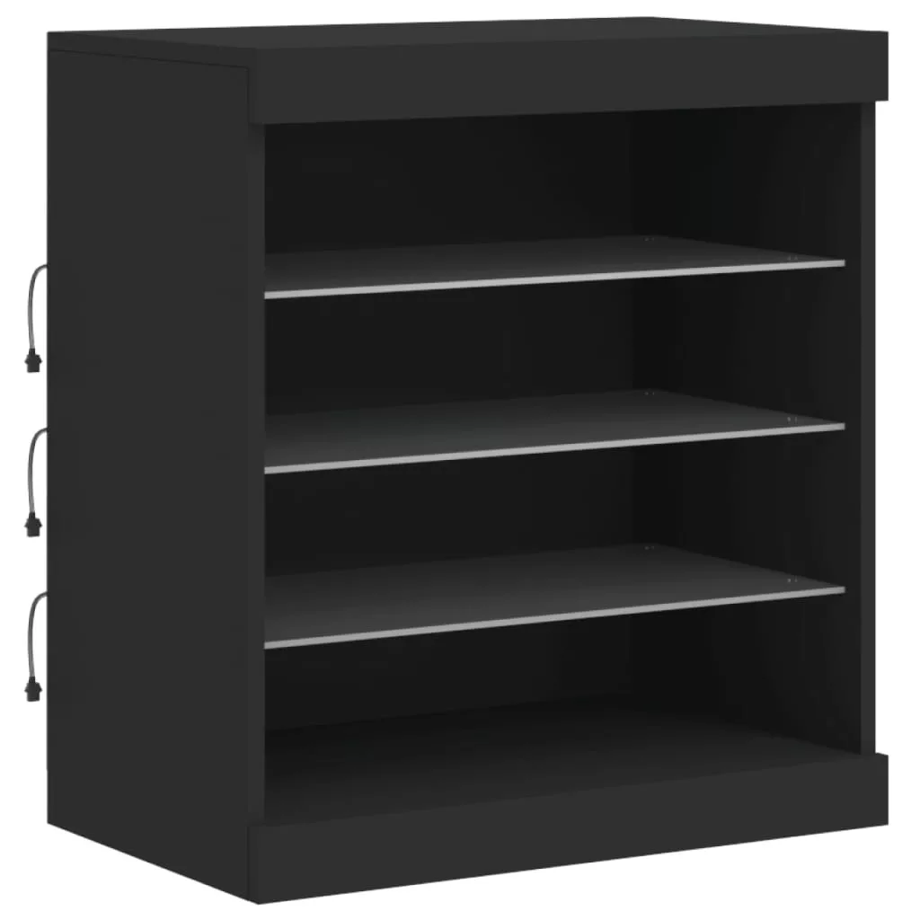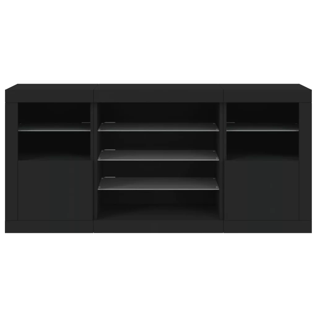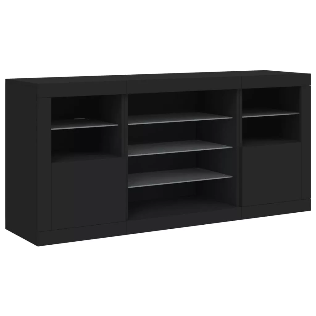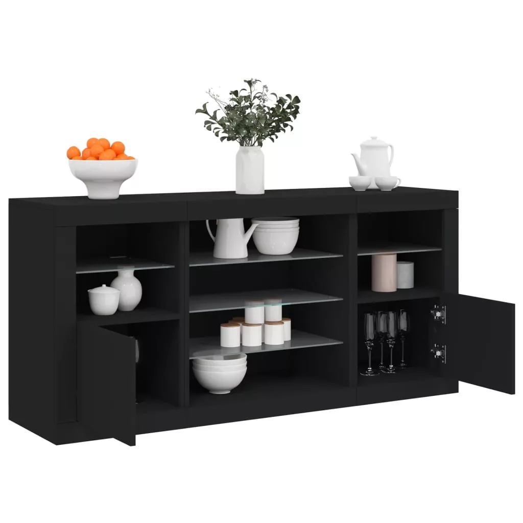 fekete tálalószekrény LED-világítással 142,5 x 37 x 67 cm