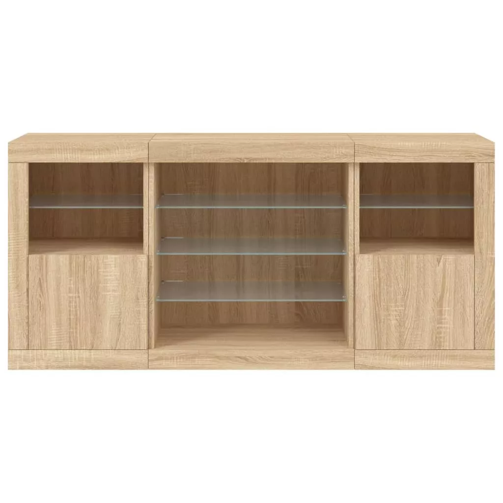 sonoma tölgy színű tálalószekrény LED-ekkel 142,5 x 37 x 67 cm