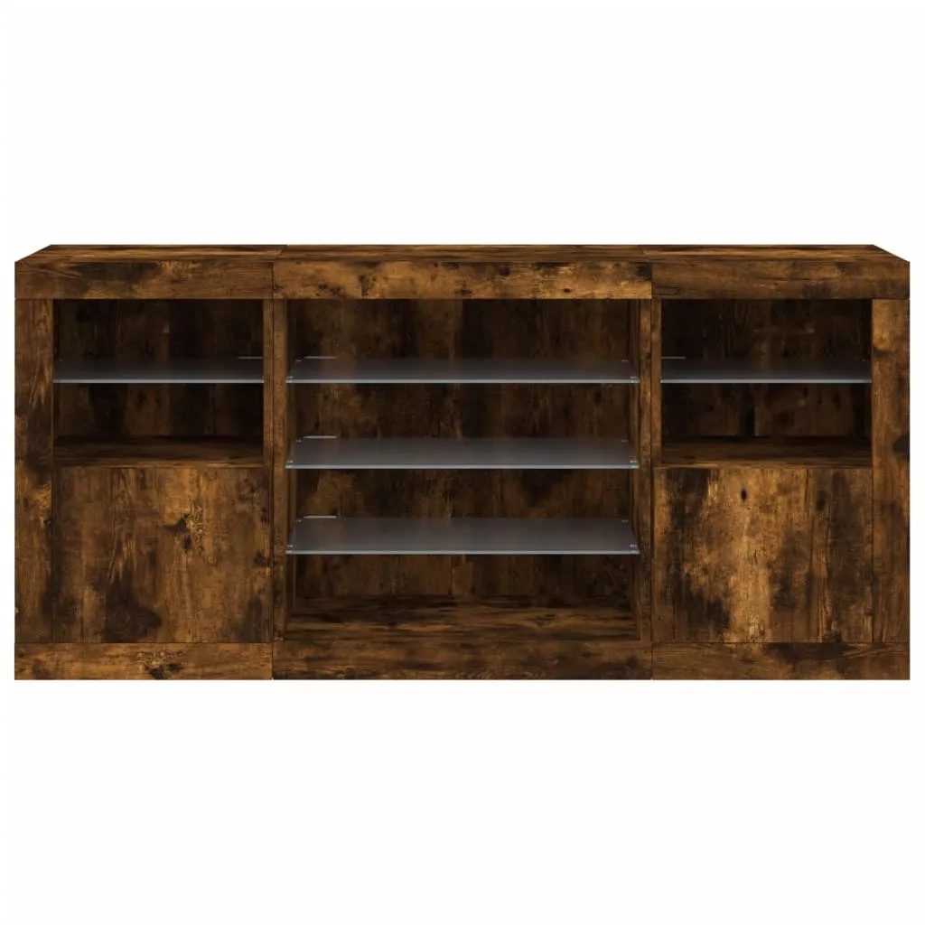 füstös tölgy színű tálalószekrény LED-ekkel 142,5 x 37 x 67 cm