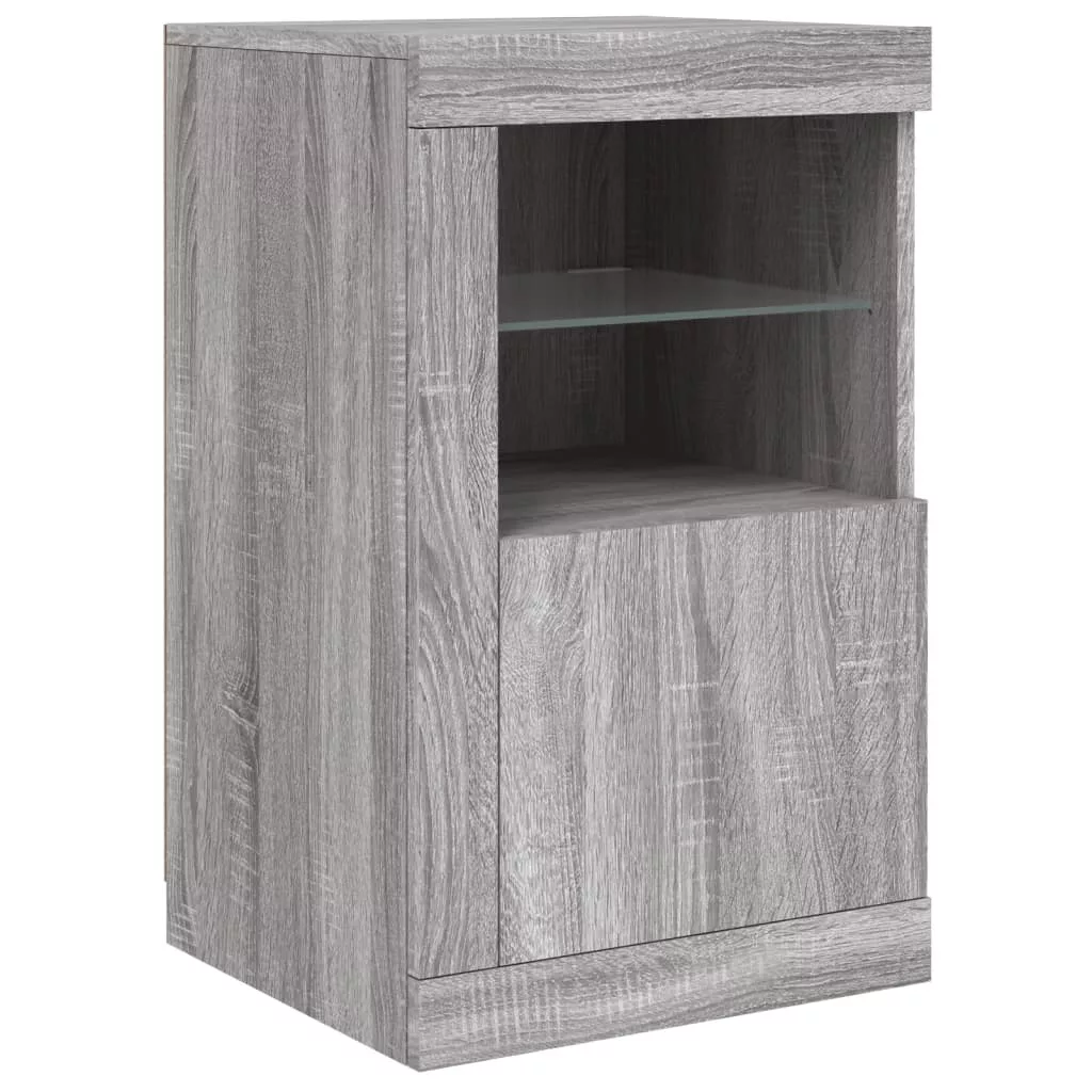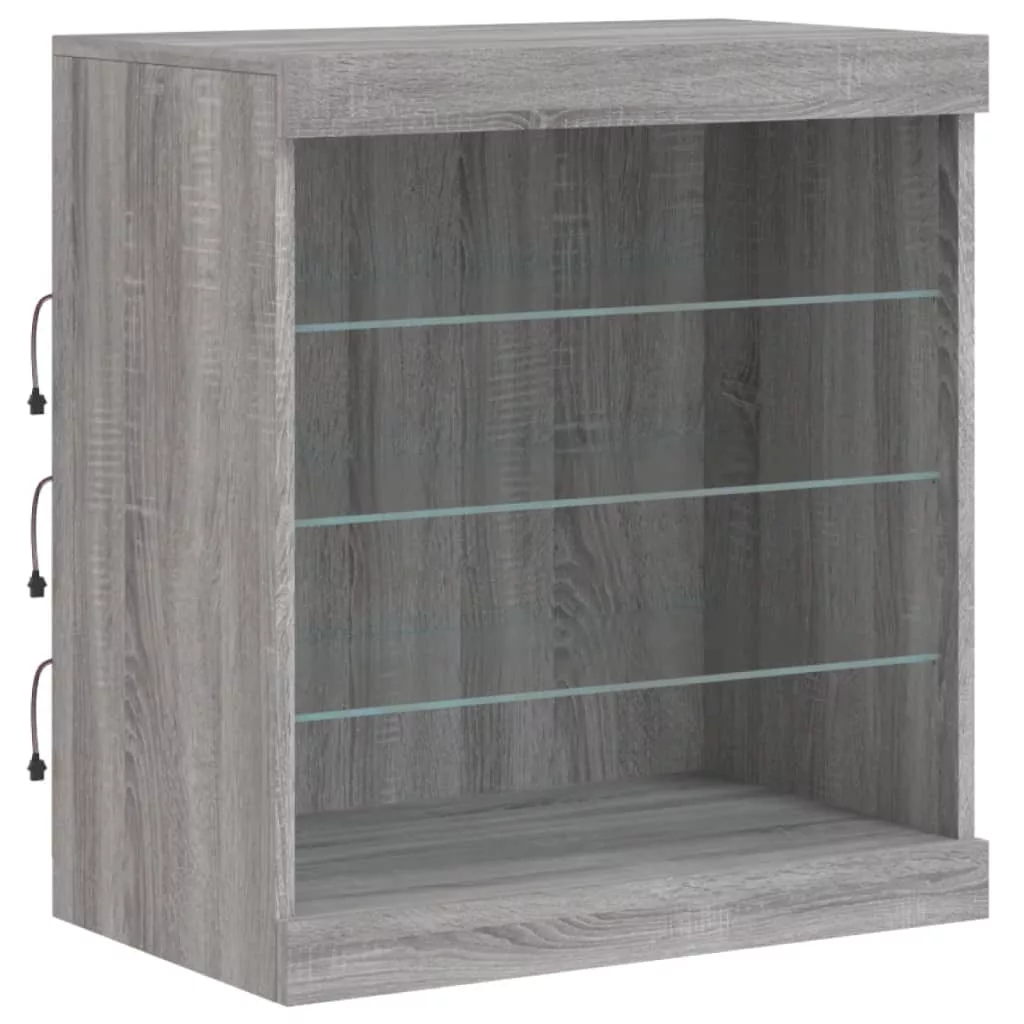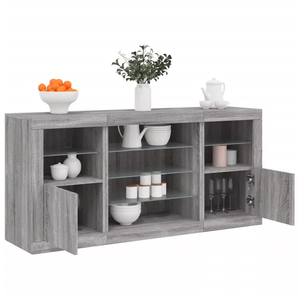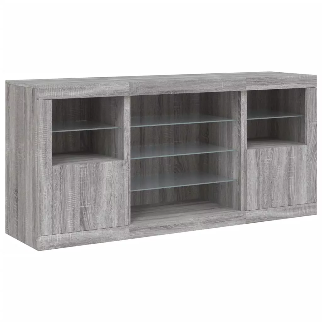 szürke sonoma tálalószekrény LED-világítással 142,5x37x67 cm