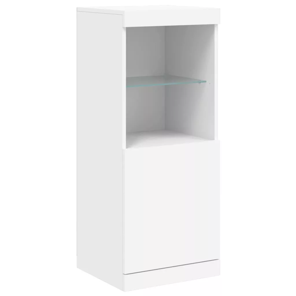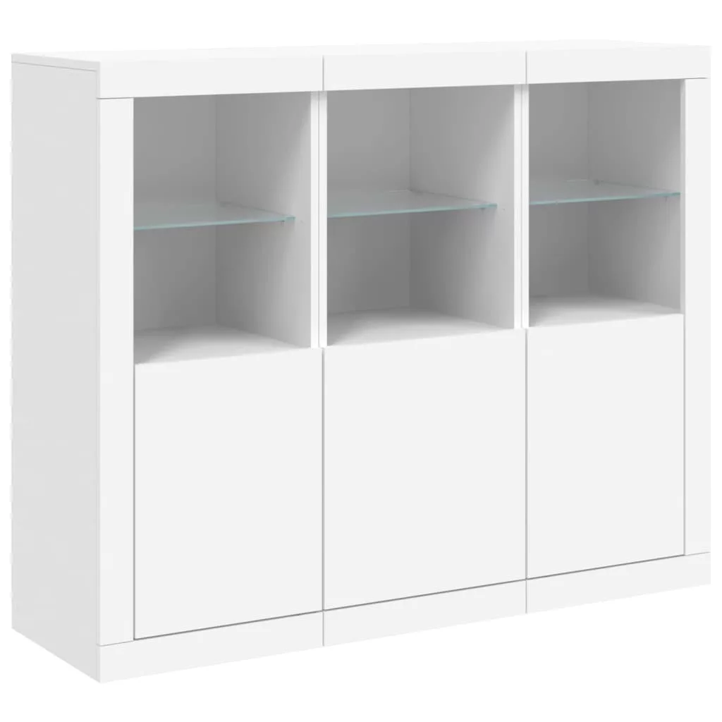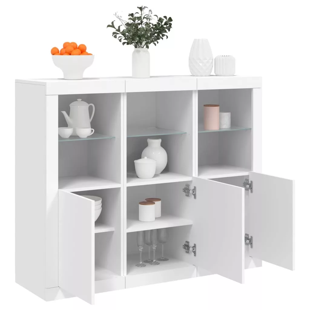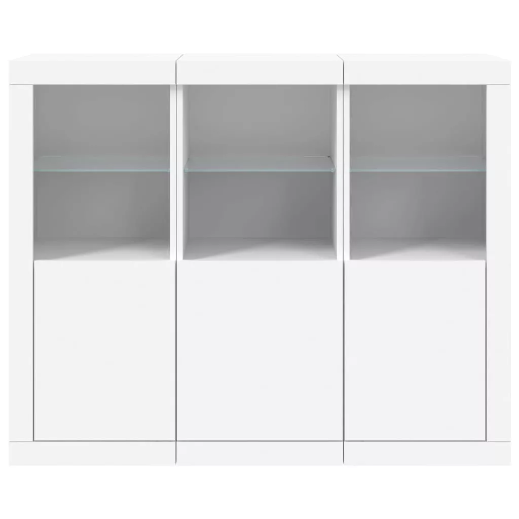 3 db fehér szerelt fa tálalószekrény LED-ekkel