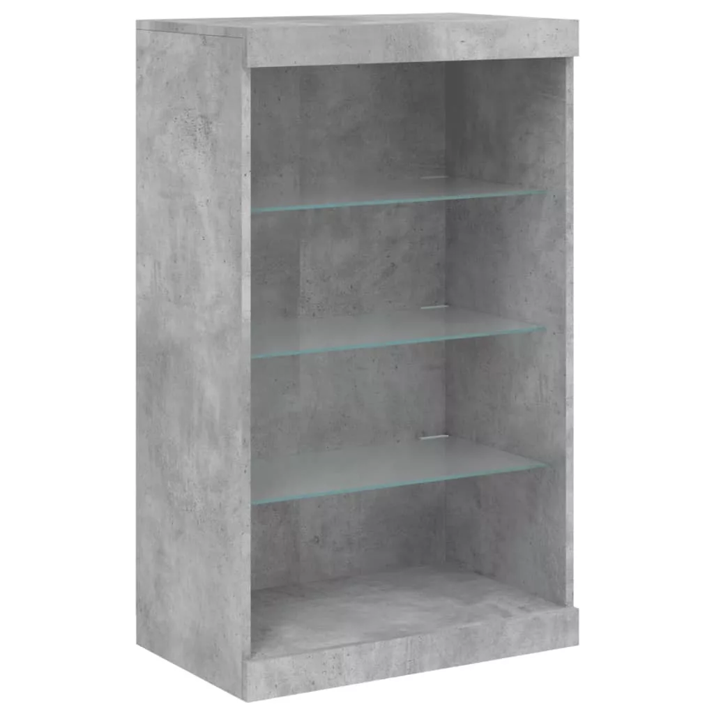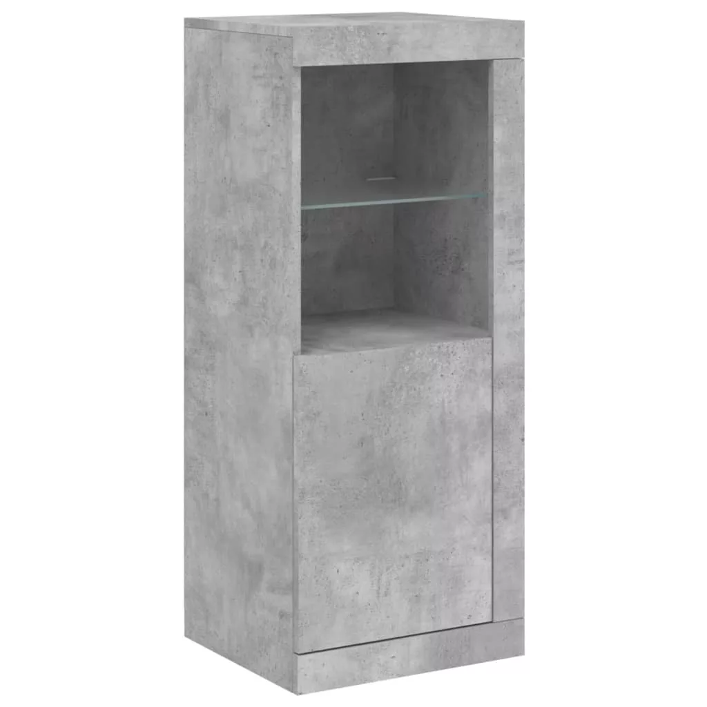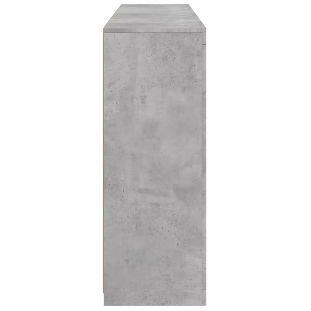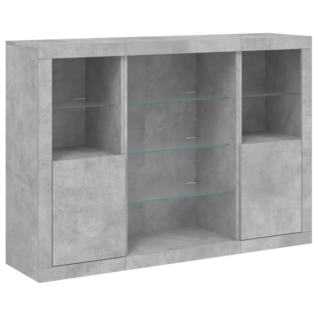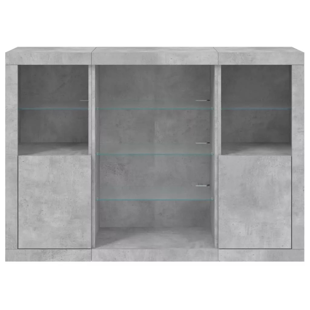3 db betonszürke szerelt fa tálalószekrény LED-ekkel