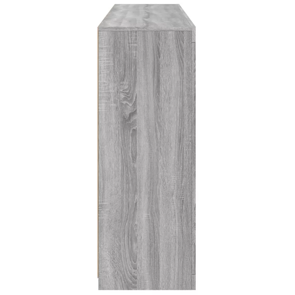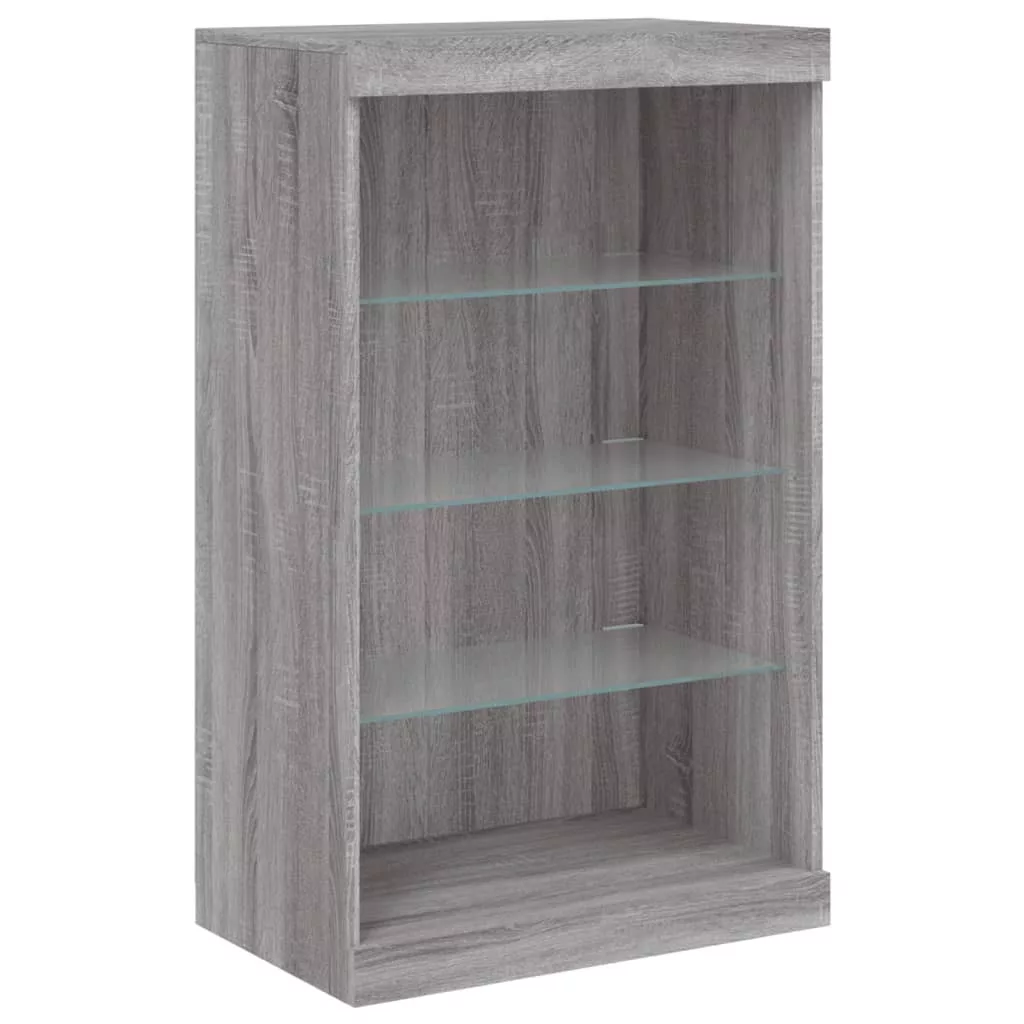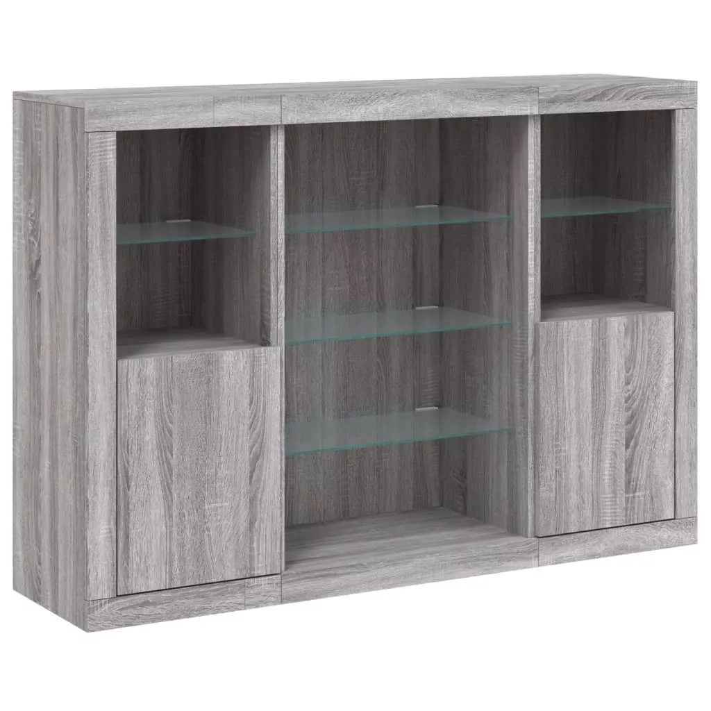3 db szürke sonoma színű szerelt fa tálalószekrény LED-ekkel