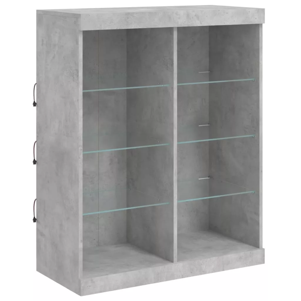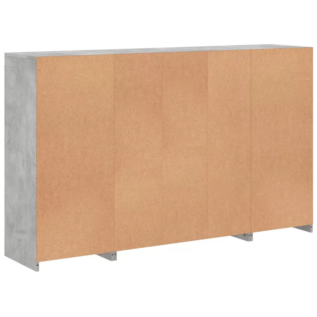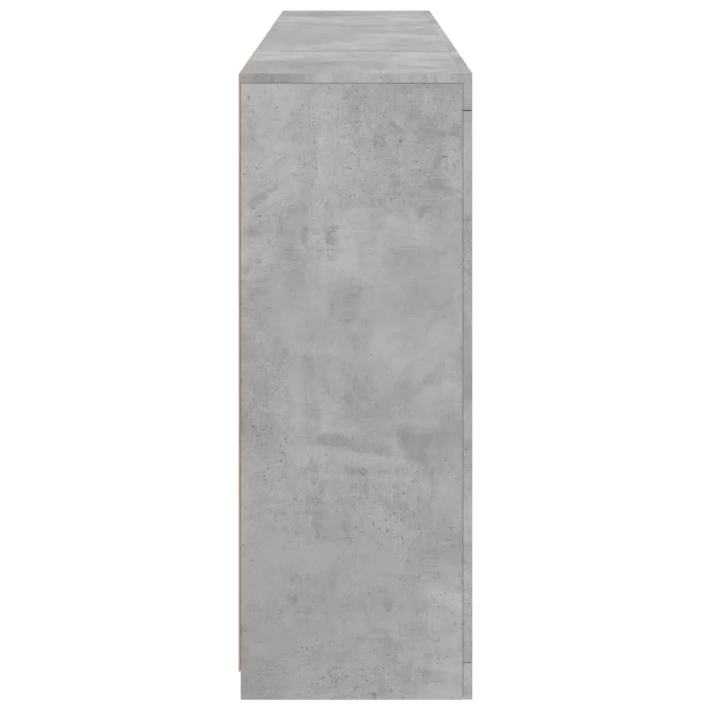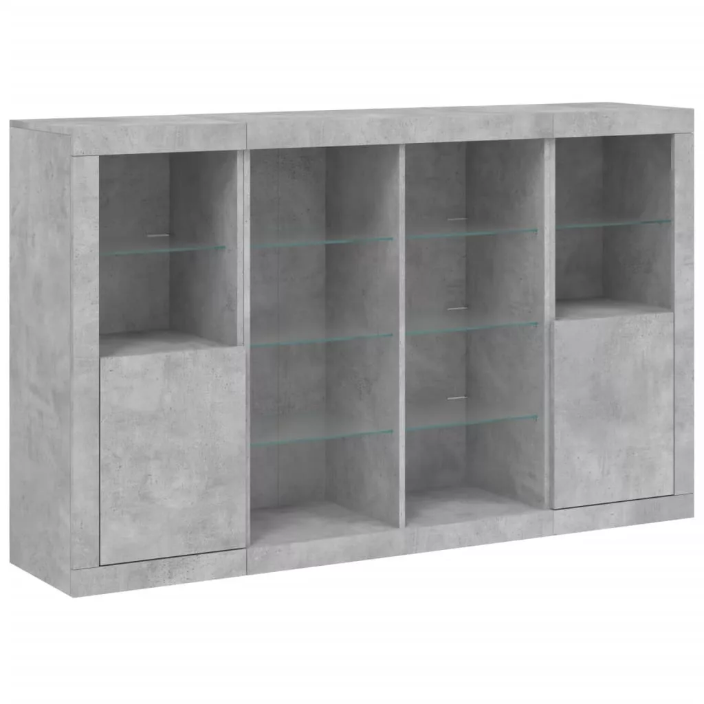 3 db betonszürke szerelt fa tálalószekrény LED-ekkel