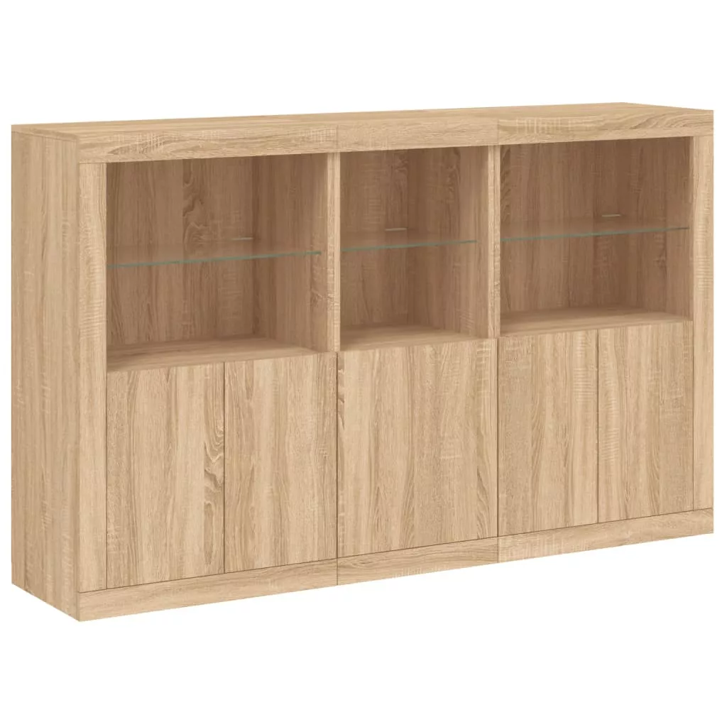 sonoma tölgy színű tálalószekrény LED-ekkel 162 x 37 x 100 cm
