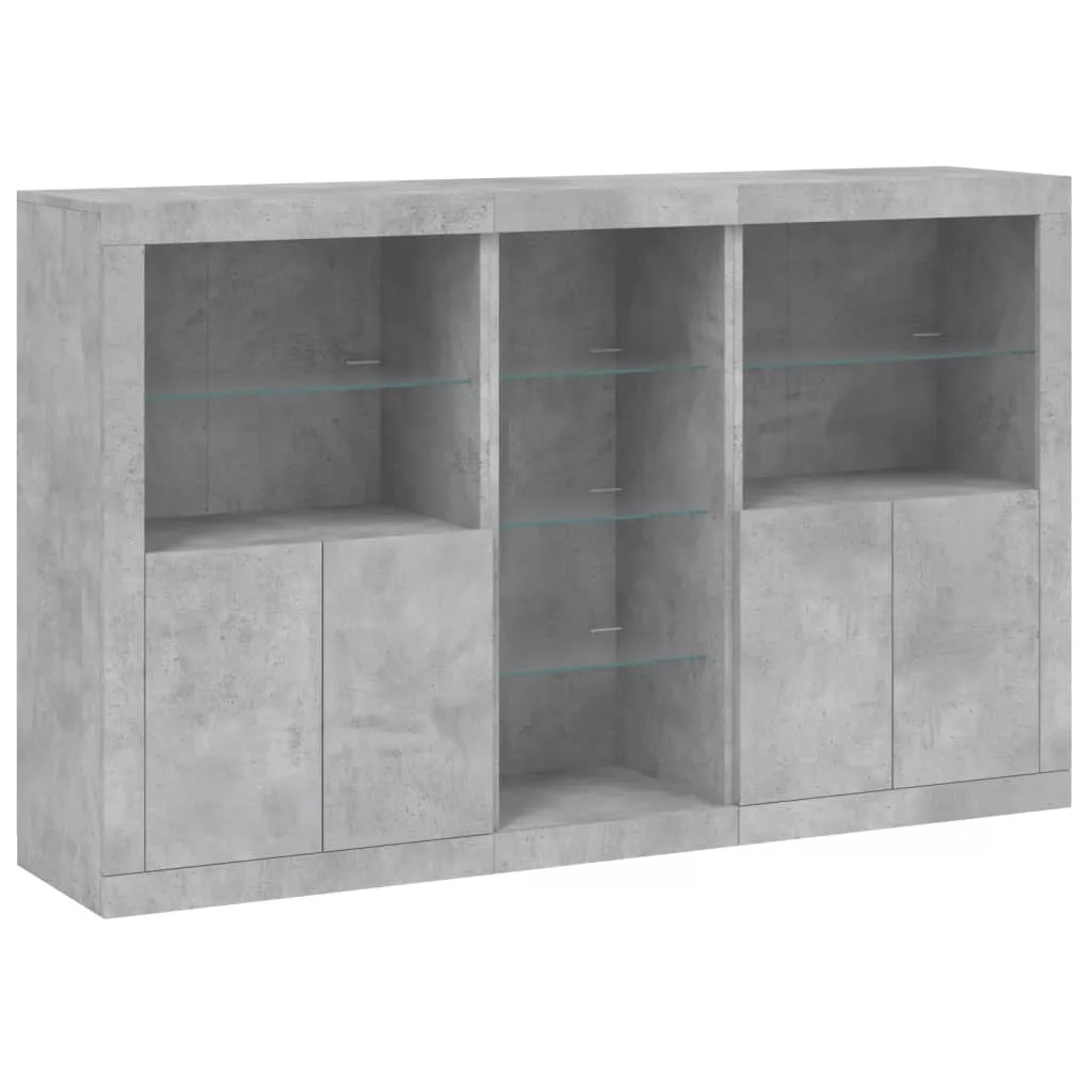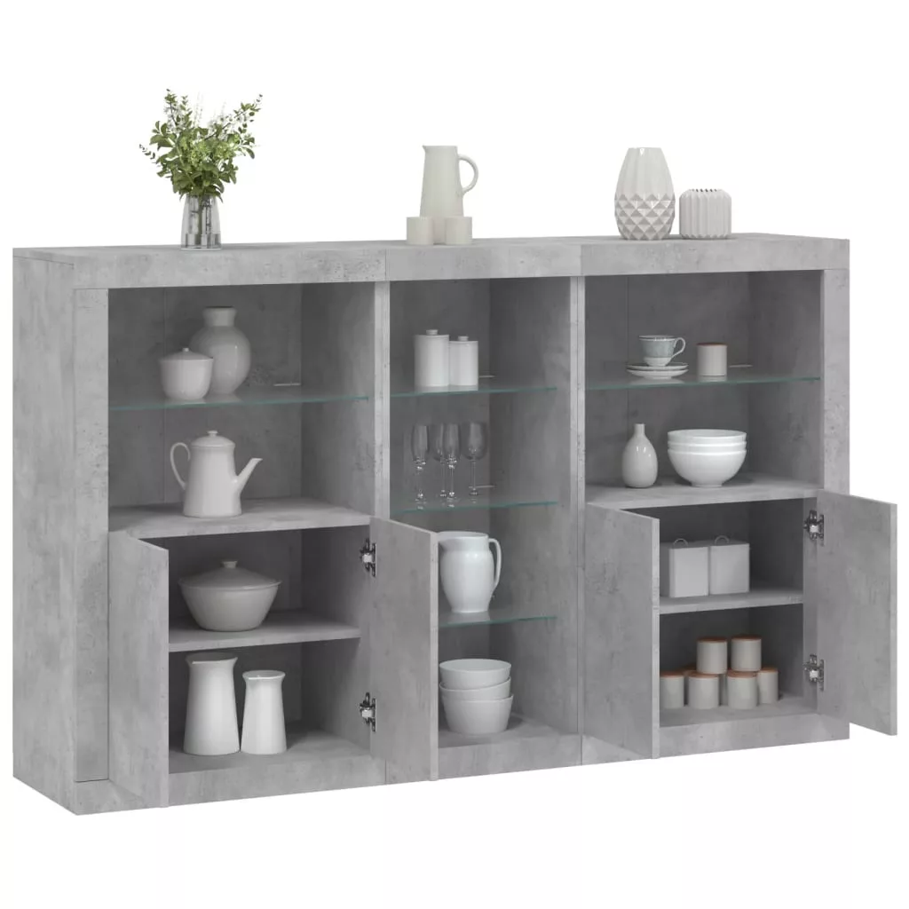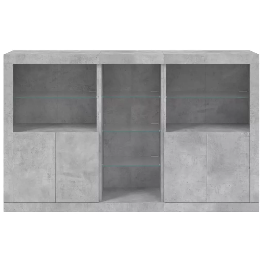 betonszürke tálalószekrény LED-világítással 162 x 37 x 100 cm