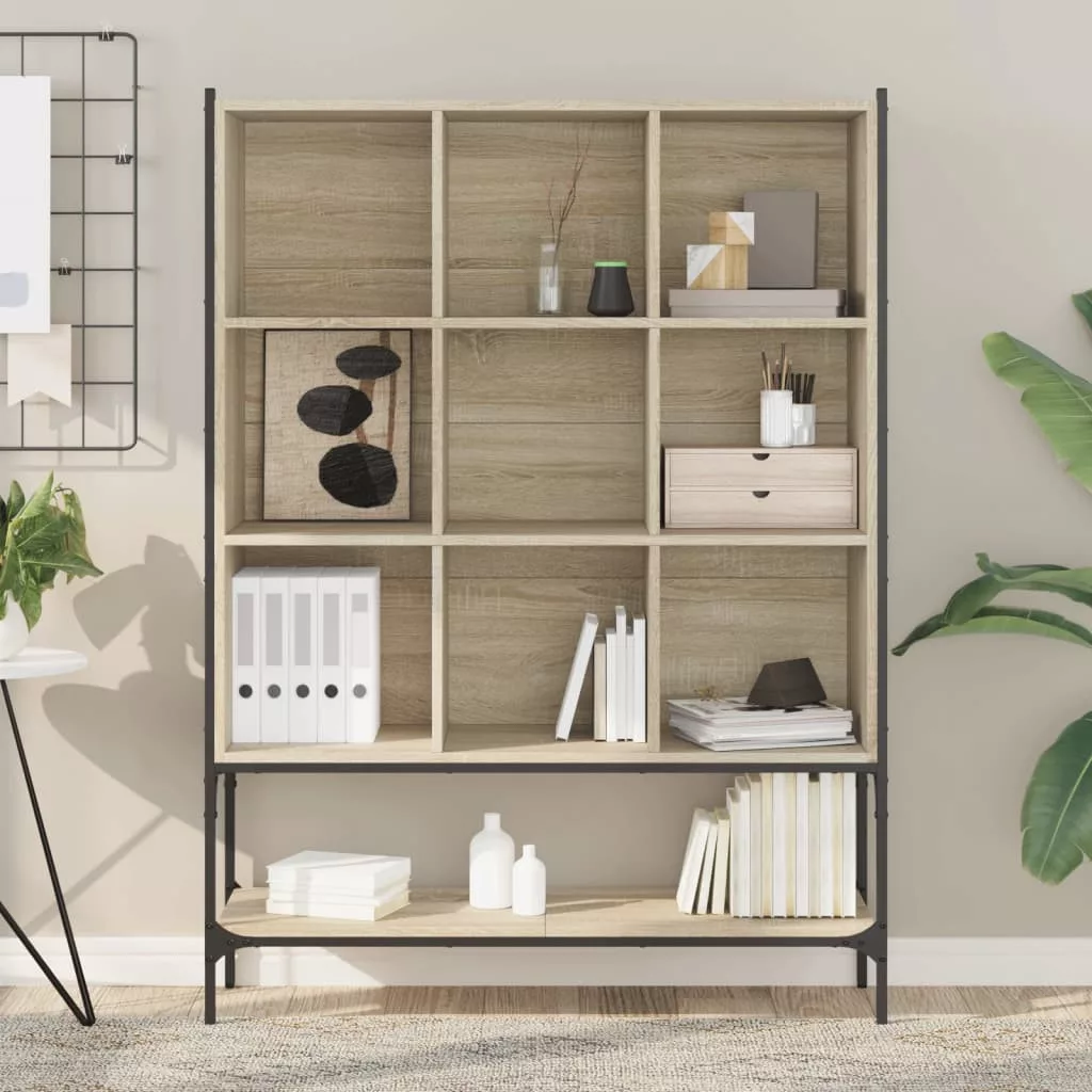 Ez a könyvszekrény nagyszerű segítőtárs a rendetlenség kezelésében, valamint időtlen kiegészítője lesz otthonának. Masszív szerkezet: Az acél és a szerelt fa masszív szerkezetet biztosít, valamint erős támaszt nyújt a tárgyak számára.Helytakarékos kialakítás: A könyvespolc optimálisan használja ki a függőleges teret, és kis alapterületet foglal el, így különösen alkalmas kis helyiségekbe.Bőséges tárolóhely: A könyvespolc 9 nyitott rekesszel és 1 alsó polccal rendelkezik, amelyek bőséges tárhelyet biztosítanak könyvei, folyóiratai, dísztárgyai, képkeretei, emléktárgyai és trófeái tárolására, bemutatására, valamint életterét is magasabb szintre emeli.Széleskörű alkalmazás: A tárolószekrény térelválasztóként is használható, bármilyen stílusú helyiségbe könnyedén beilleszthető. Elhelyezheti a nappaliban dísztárgyai kiállításához, a dolgozószobában könyvek és dokumentumok tárolásához, a hálószobában a mindennapi tárgyak számára, vagy az alagsorban az apróságok tárolásához. Figyelem:A felborulás elkerülése érdekében ezt a terméket a mellékelt fali rögzítőeszközzel kell használni.