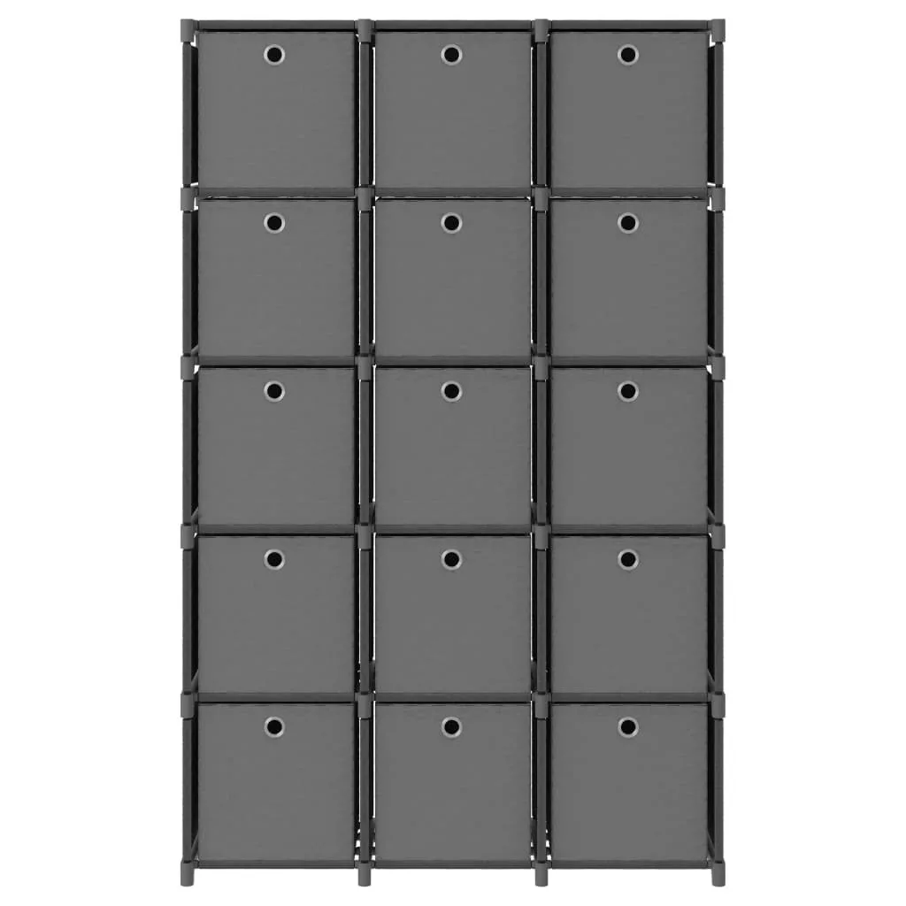 15 rekeszes szürke szövet polc dobozokkal 103 x 30 x 175,5 cm