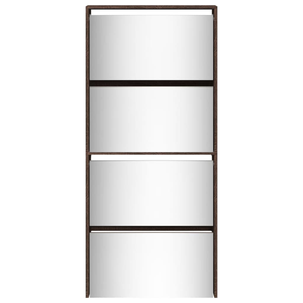 4 szintes barna tölgyszínű cipőszekrény tükörrel 63x17x134 cm