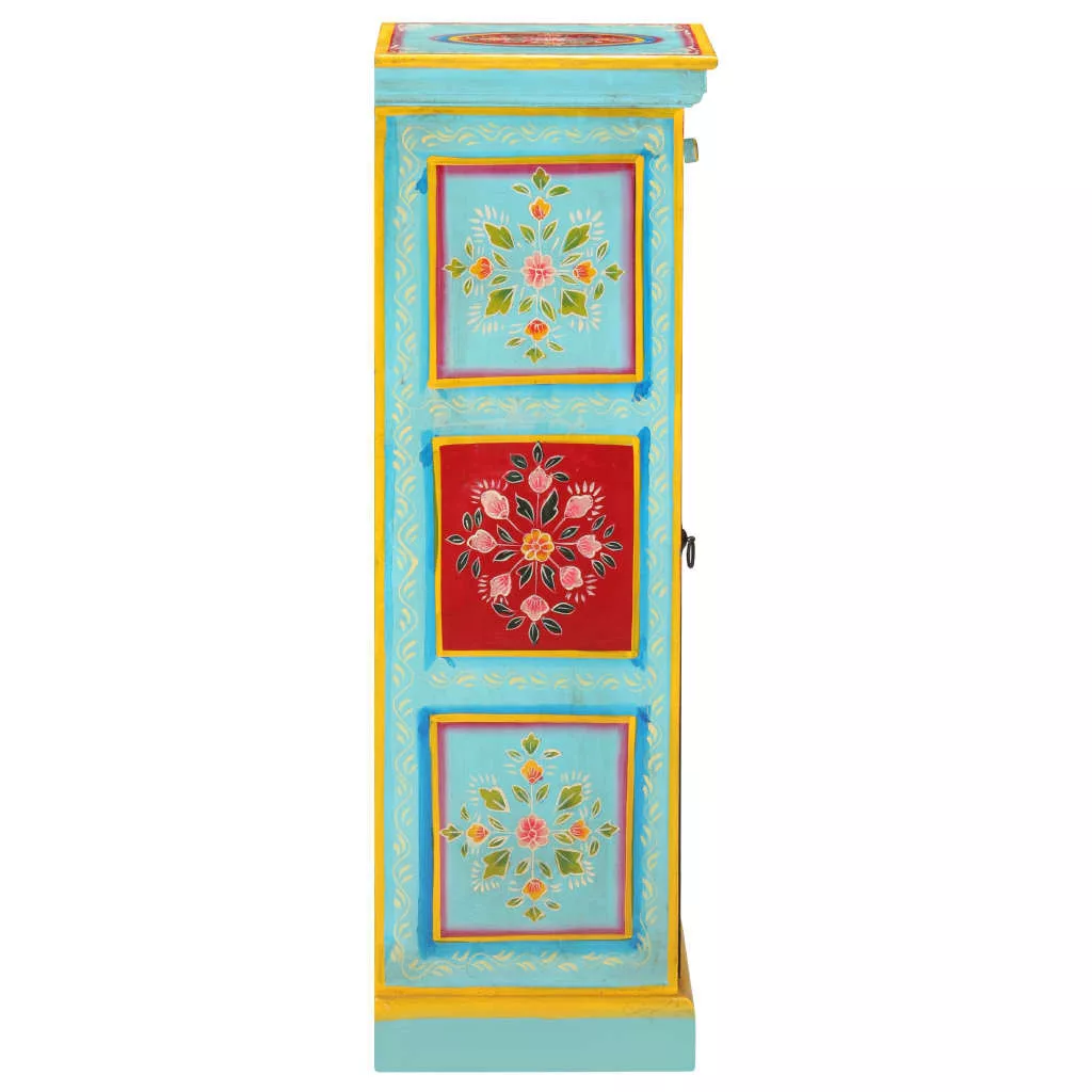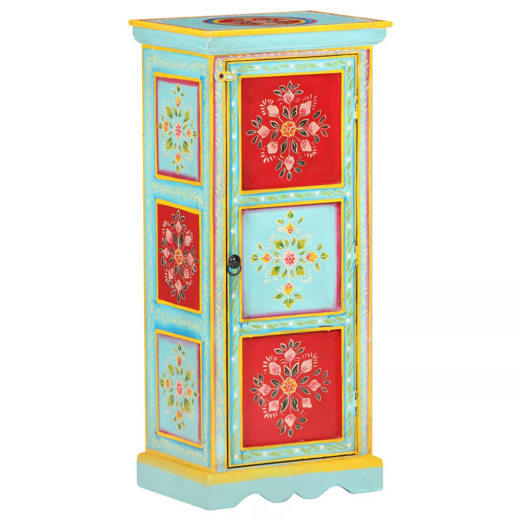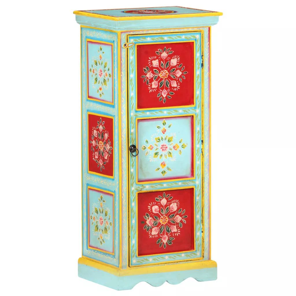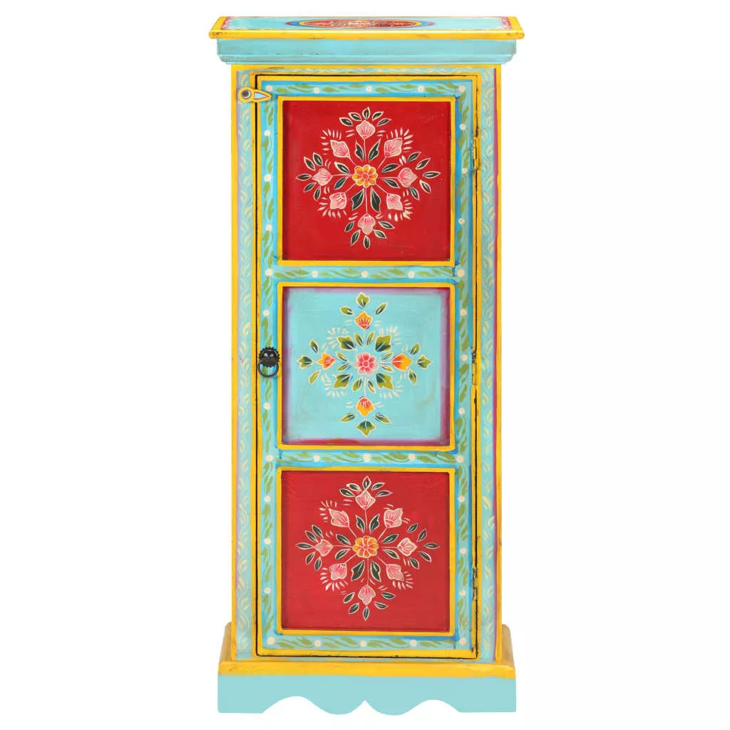 Ez az egyedi, kézzel festett, tömör mangófa tálaló színt csempész otthona enteriőrjébe, melynek szemet gyönyörködető darabja lehet. A tárolószekrény gazdag, kézzel festett díszítőelemeket kapott, amelyek eleganciát sugároznak és kifinomult ízlésről árulkodnak. A tálalószekrény 3 polccal lett felszerelve, így elegendő helyet biztosít személyes tárgyai, például könyvek, magazinok és egyéb alapvető holmik tárolásához. Ez a tálaló tömör mangófából, trópusi keményfából készült. Elég erős ahhoz, hogy elbírja a súlyt és megfelelően kopásálló és időtálló legyen. Az egyedülálló kézművesmunkának köszönhetően mindegyik darab eltér kissé a másiktól. Ez a színes tálaló lakberendezése dekoratív, egyszersmind praktikus kiegészítője lehet! Figyelem: A bútordarabok színe minden darab esetében eltérő lehet, így minden darab egyedi. A szállítás véletlenszerűen történik.