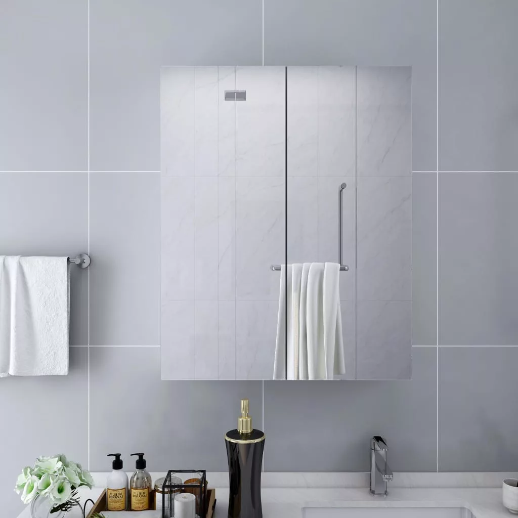 Teremtsen elbűvölő és kellemes látványt fürdőszobájában ezzel a tükrös szekrénnyel és varázsoljon modern stílust bármely helyiségbe! A tükrös faliszekrény üvegből és MDF-ből készült melamin bevonatú felülettel, így tartós és stabil. A szekrény 2 ajtóval és összesen 3 rekesszel rendelkezik, elegendő tárolóhelyet kínálva. Könnyen elhelyezheti bennük fürdőszobai kellékeit, pl. sampont, szappant, fogkrémet stb. Ez a stílusos és funkcionális szekrény biztosan autentikussá és kivételessé teszi szobája lakberendezését!