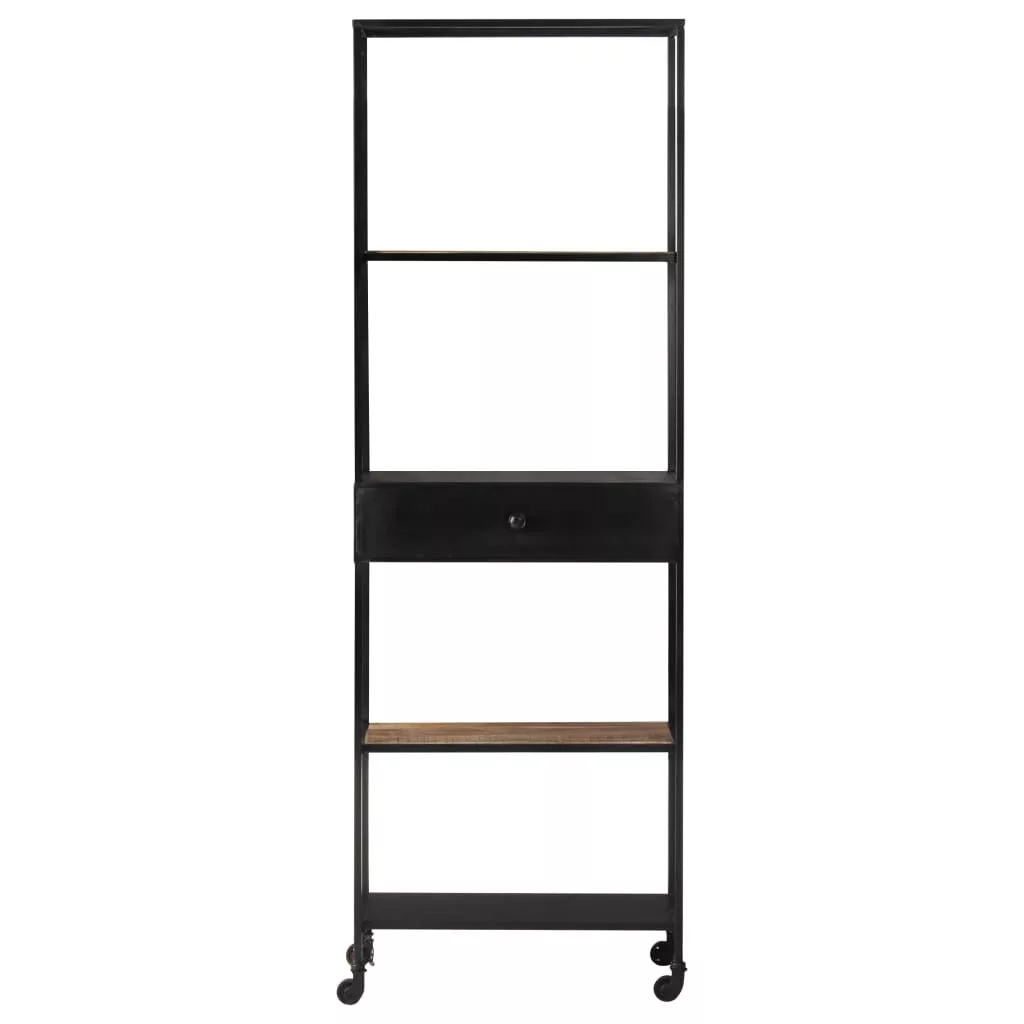 Az ipari stílusú könyvszekrény otthona dekoratív és praktikus kiegészítője lesz. A könyvszekrény nyers mangófából, egy trópusi keményfából készült, amely elég erős, hogy elbírja a ránehezedő súlyt, és időtálló is, így stabil és tartós. A kivitelezésnek és a gyönyörű faerezetnek köszönhetően minden bútordarab egyedi, és kissé különbözik a többitől. A könyvespolc 4 polca és 1 fiókja bőséges helyet biztosít magazinok, könyvek, DVD-k, multimédiás eszközök és egyéb dísztárgyak kézközelben történő rendezett tárolásához. Emellett ez a könyvállvány nedves ruhával könnyen tisztítható. Figyelem: A szín és az erezet minden darab esetében eltérő lehet, így ezek a bútorok mind egyediek; a kiszállítás véletlenszerűen történik.