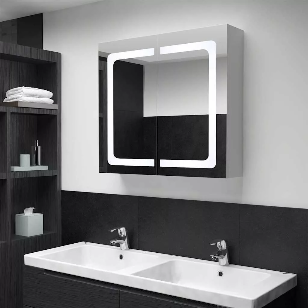 tükrös fürdőszobaszekrény LED világítással 80 x 12,2 x 68 cm