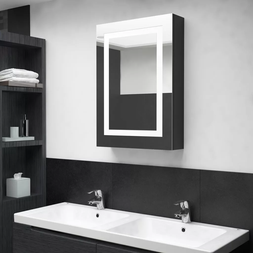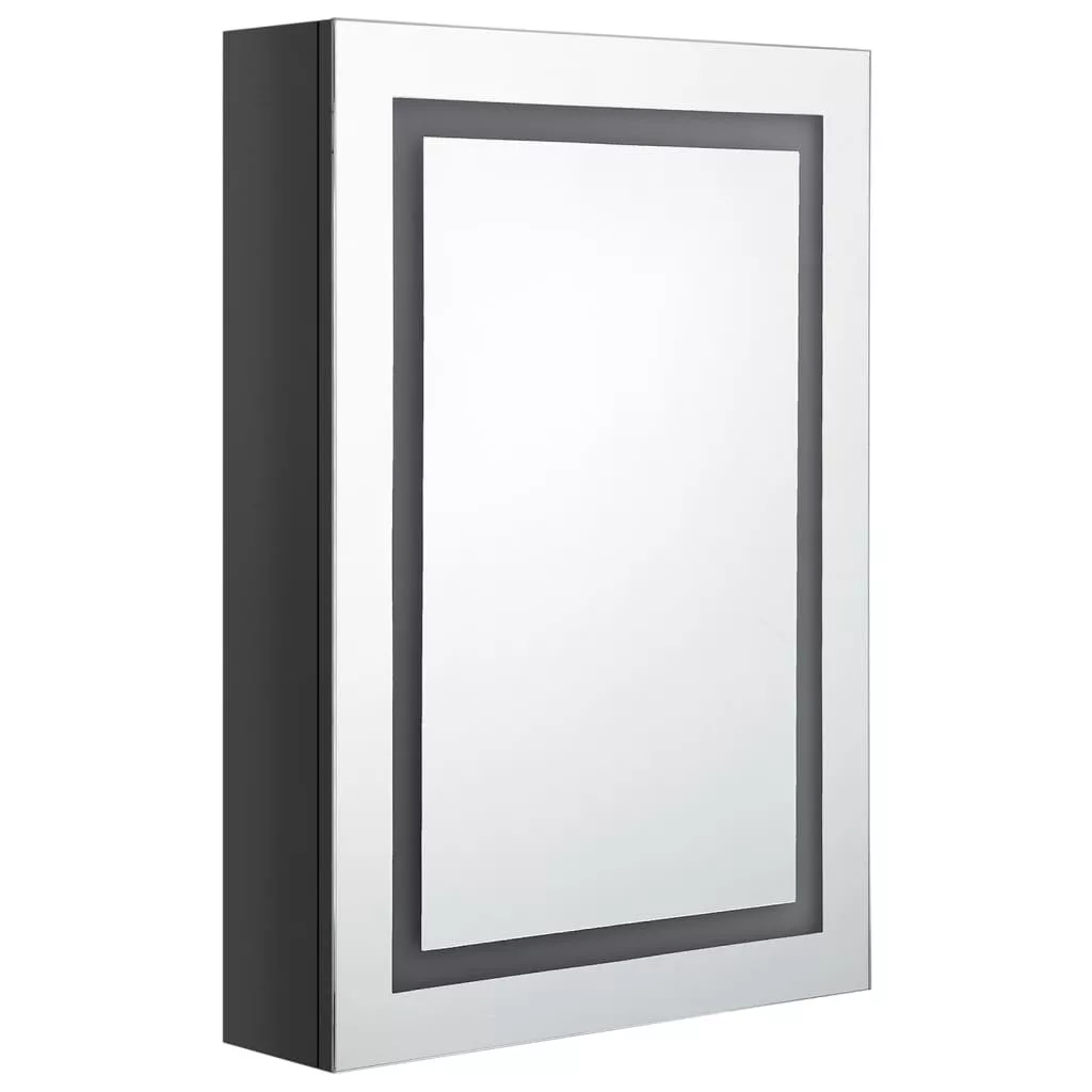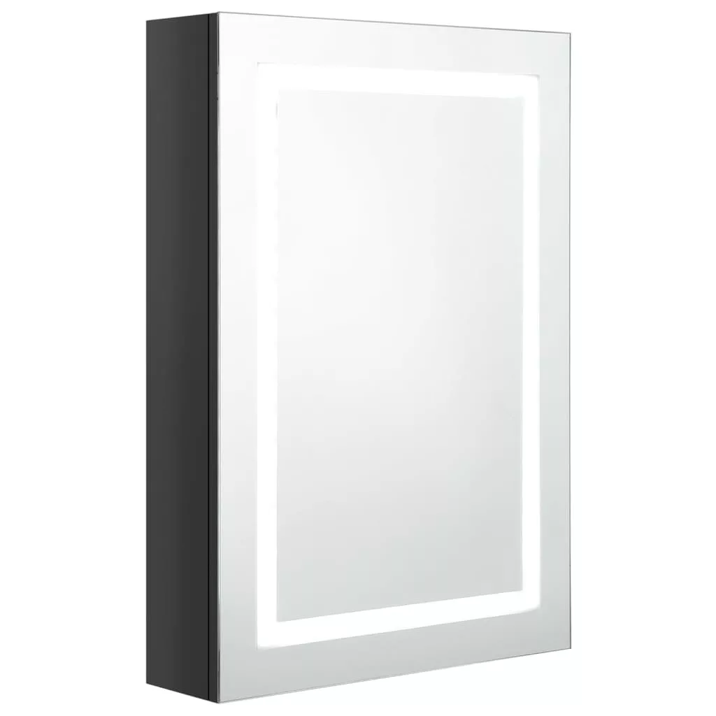 fényes fekete LED-es tükrös fürdőszobaszekrény 50 x 13 x 70 cm