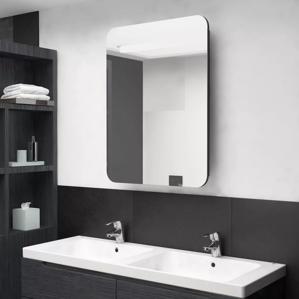 fekete LED-es tükrös fürdőszobaszekrény 60 x 11 x 80 cm