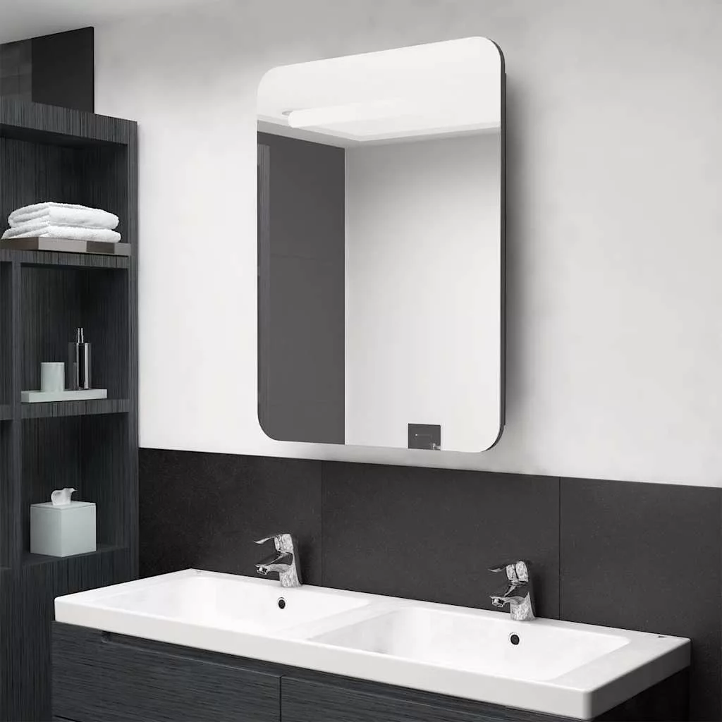 fényes szürke LED-es tükrös fürdőszobaszekrény 60 x 11 x 80 cm