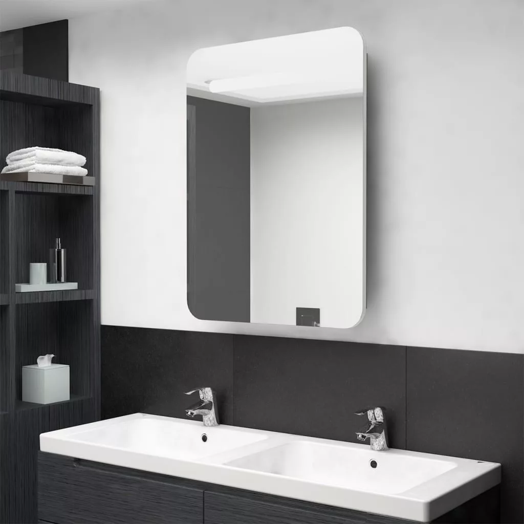 Csempésszen különleges bájt fürdőszobájába LED-es tükrös szekrényünkkel! A LED-fényekkel ellátott fali tükrös szekrényünk egy csipetnyi modern stílust és lágy világítást visz minden helyiségbe! Melamin bevonatú minőségi MDF lemezből készült, garantálva a hosszú távú használatot. A tetején lévő beépített LED-csőnek köszönhetően a legmegfelelőbb fényben láthatja magát sminkeléshez, arc- és bőrápoláshoz, és nem csak a szoba szépül meg, de arca és mosolya is. Emellett a szekrény két polca helyet biztosít a piperecikkek és fürdőeszközök, például szappan, sampon, fogkrém stb. tárolására. A stílusos és praktikus szekrény biztosan különlegessé teszi szobáját! Megjegyzés:A termék USB-csatlakozóval rendelkezik, ám a hitelesített 5 V-os USB áramforrást a csomag nem tartalmazza.