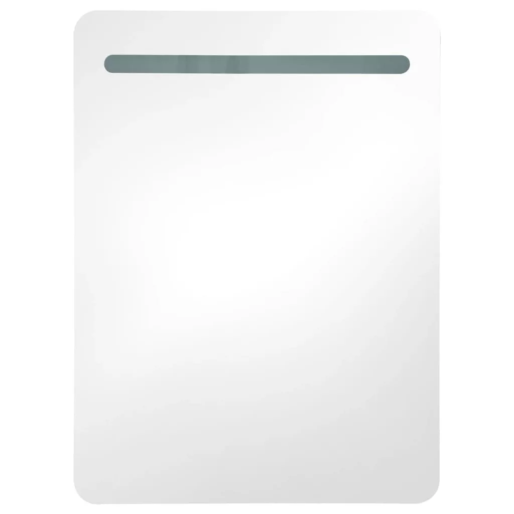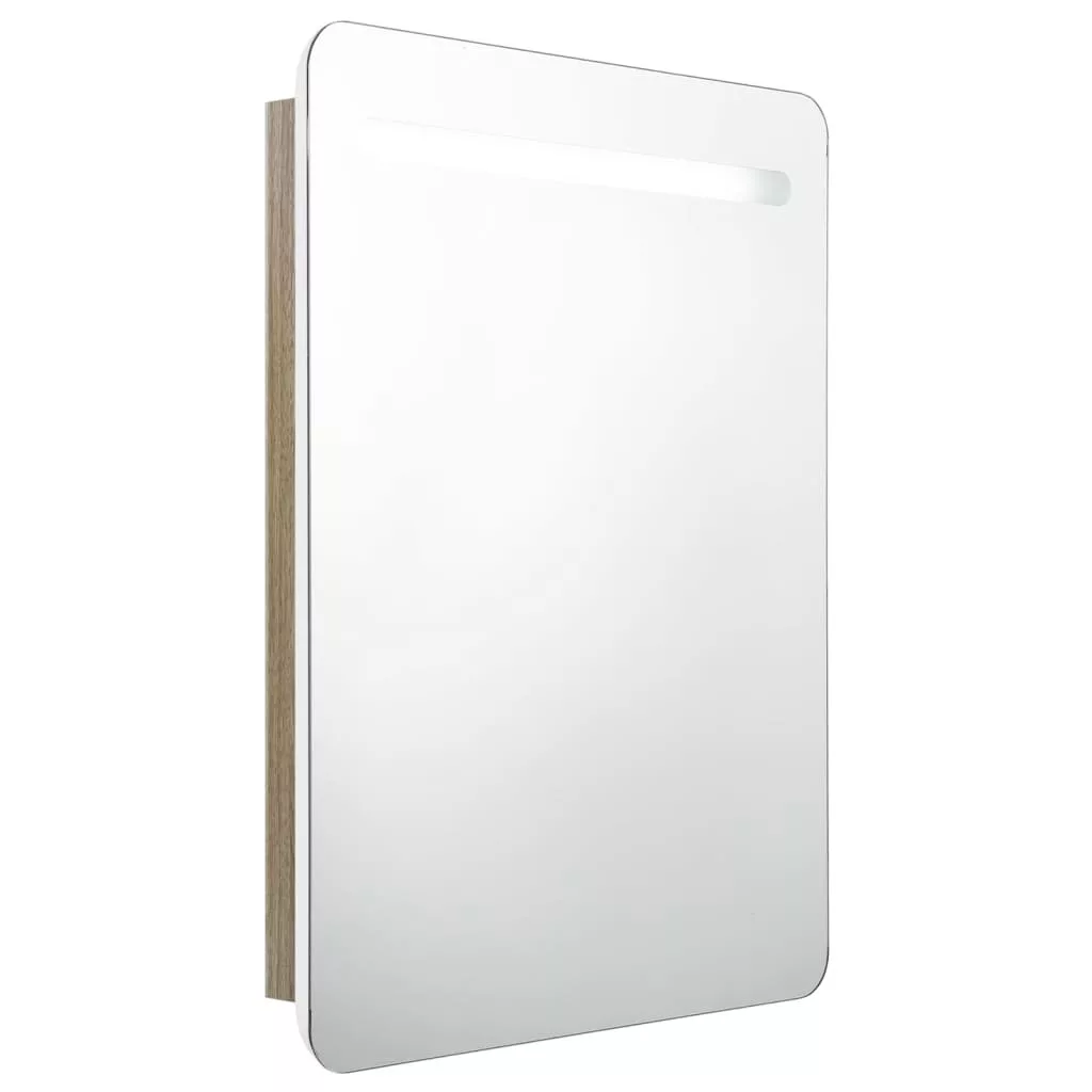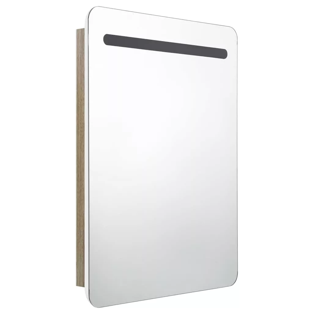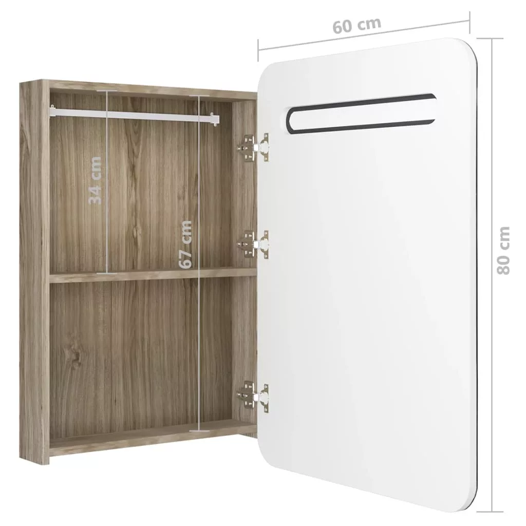 fehér, tölgyszínű LED-es tükrös fürdőszobaszekrény 60x11x80 cm