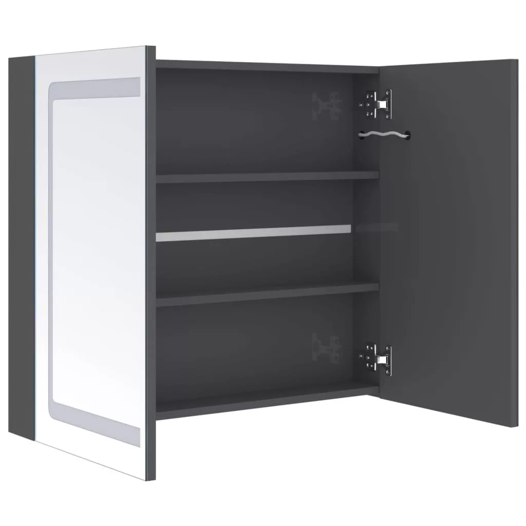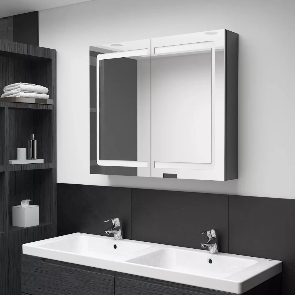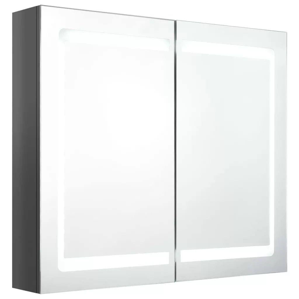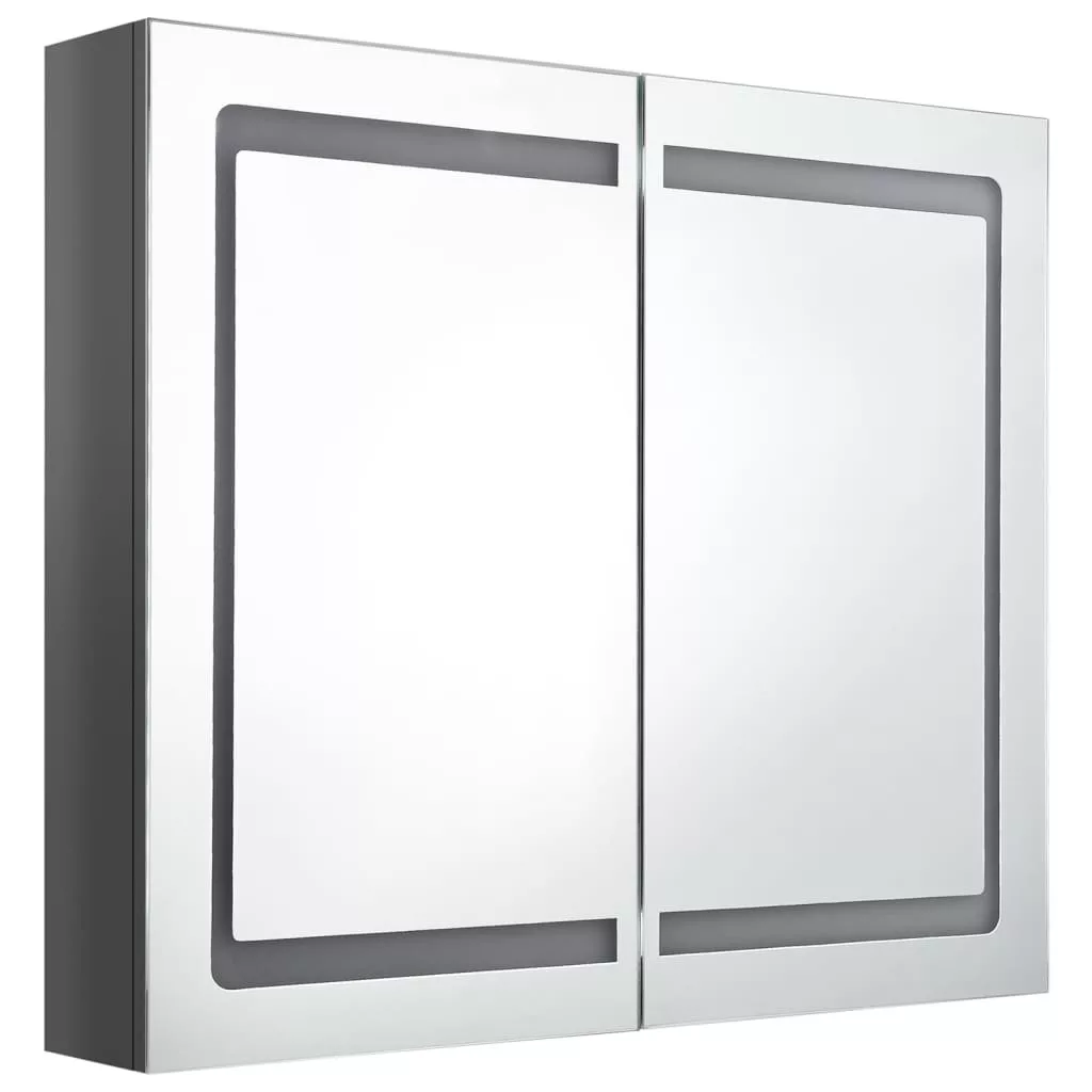 fényes szürke LED-es tükrös fürdőszobaszekrény 80 x 12 x 68 cm