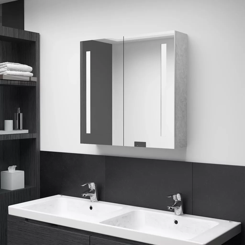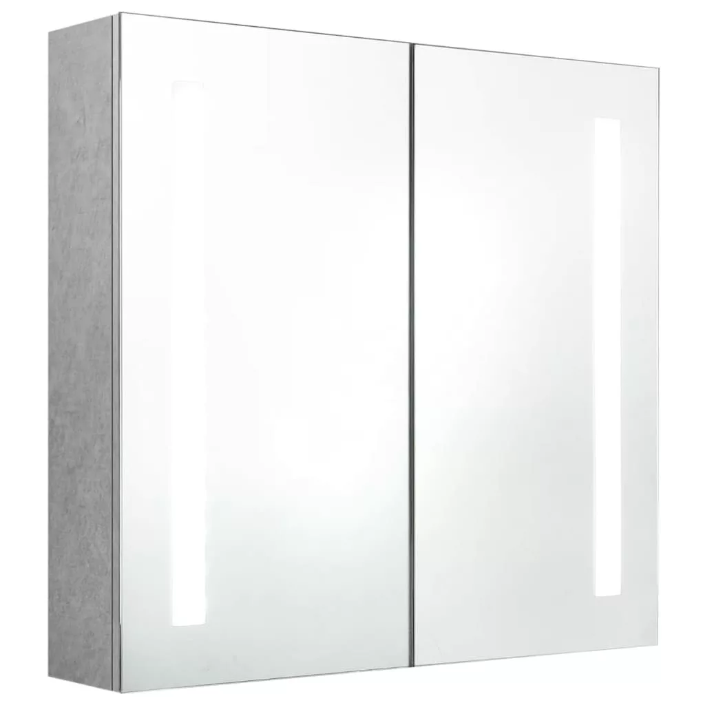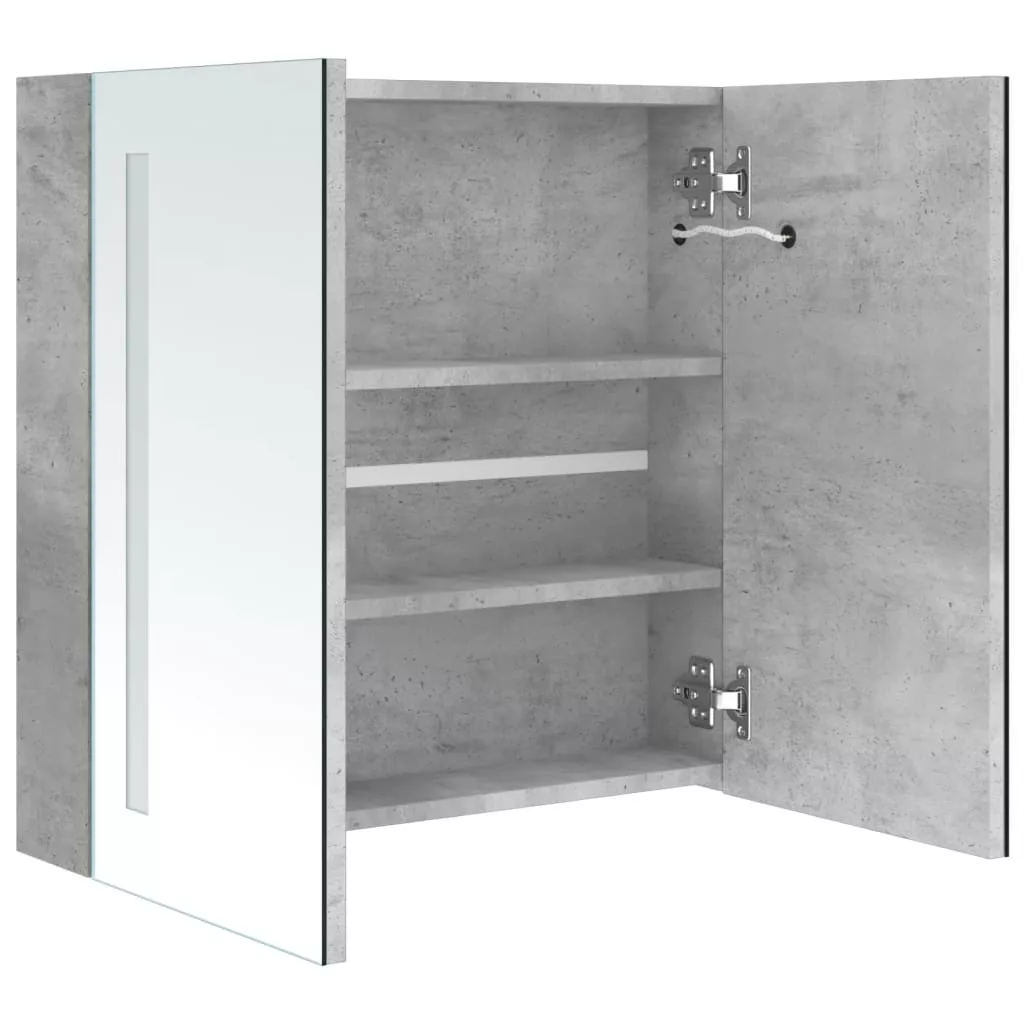 betonszürke LED-es tükrös fürdőszobaszekrény 62 x 14 x 60 cm