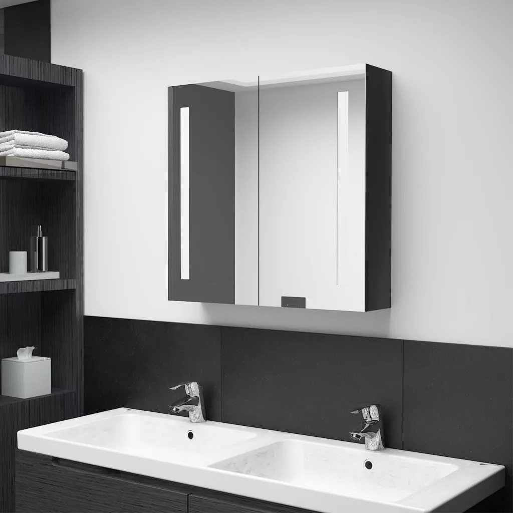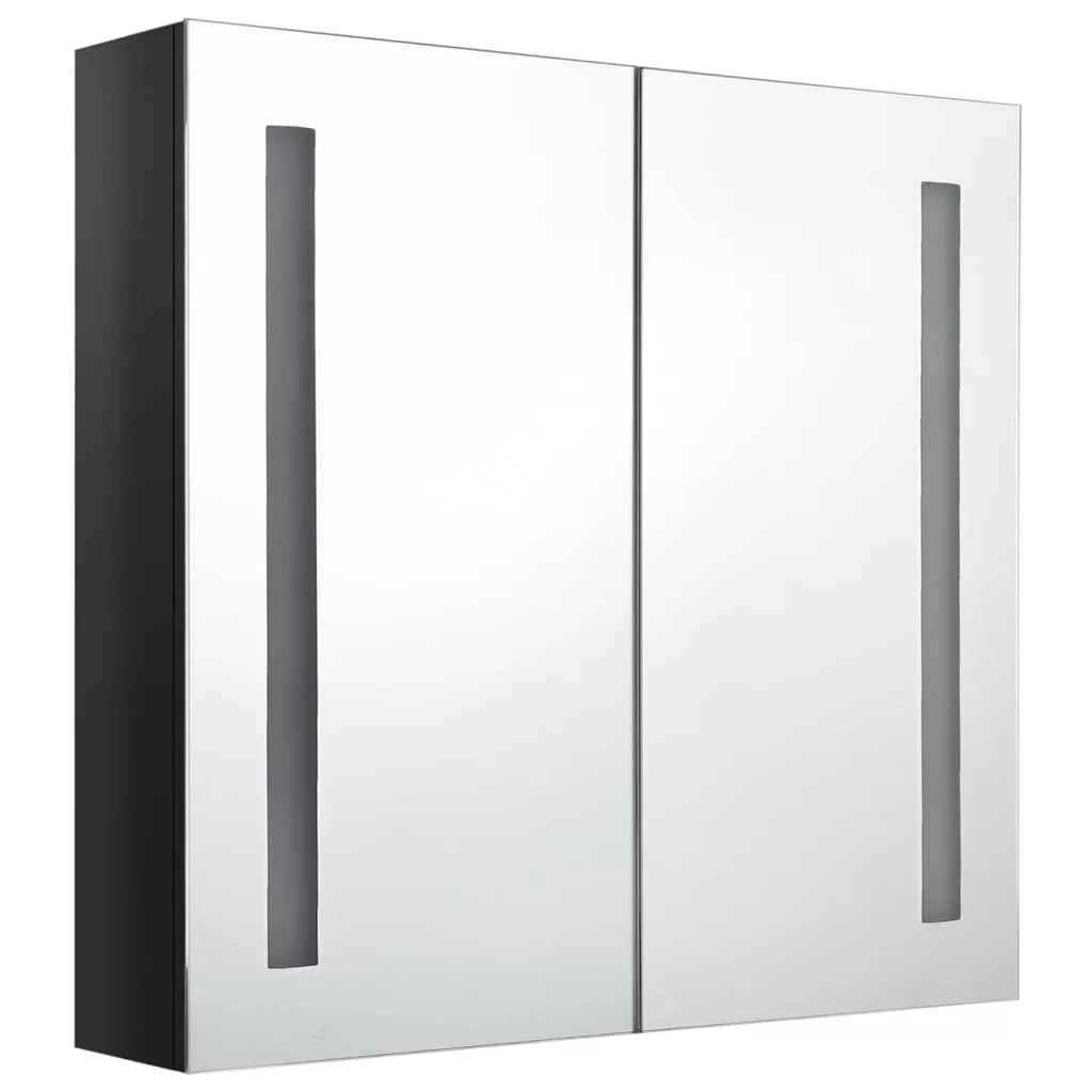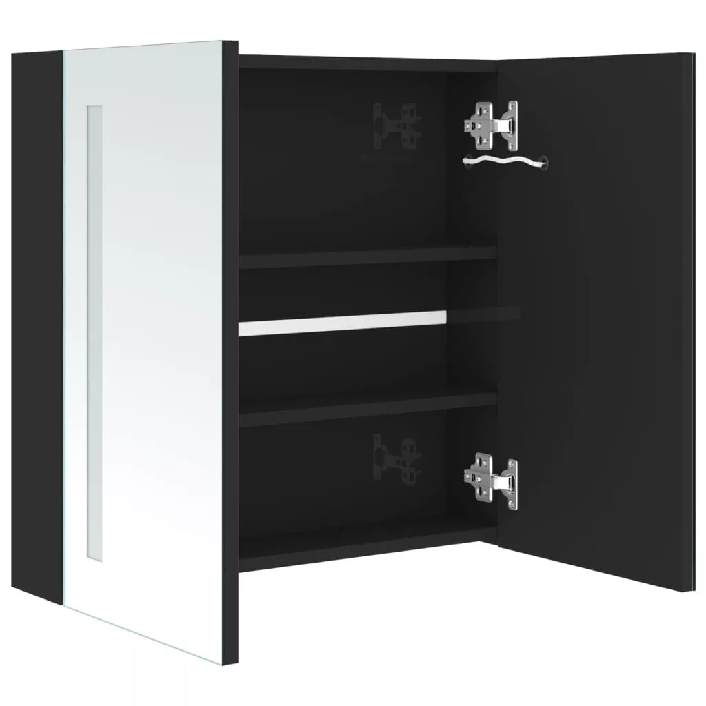 fényes fekete LED-es tükrös fürdőszobaszekrény 62 x 14 x 60 cm