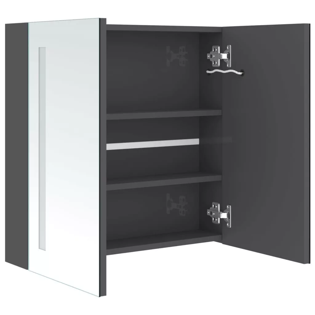 betonszürke LED-es tükrös fürdőszobaszekrény 62 x 14 x 60 cm