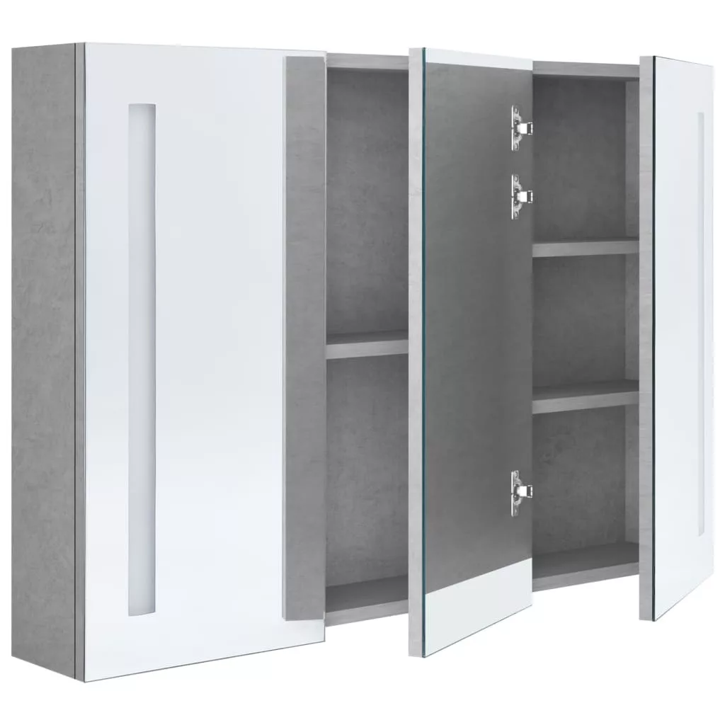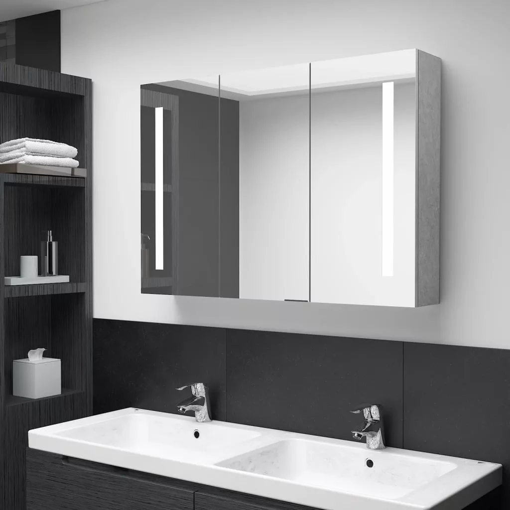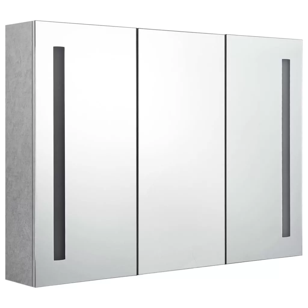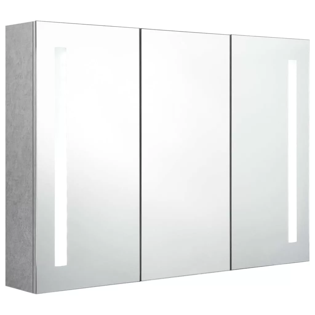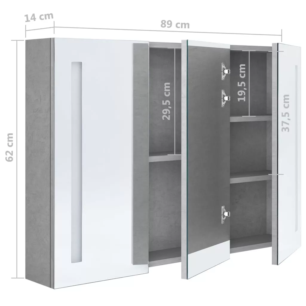 betonszürke LED-es tükrös fürdőszobaszekrény 89 x 14 x 62 cm