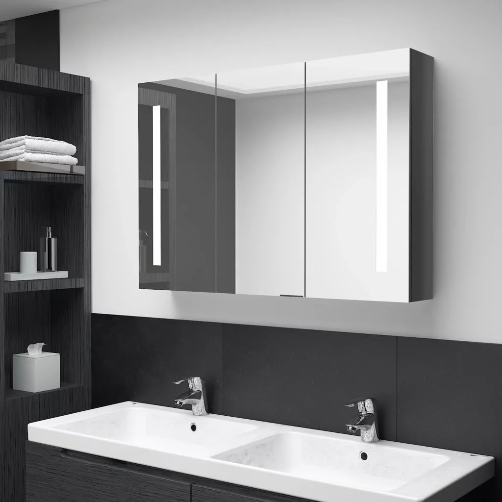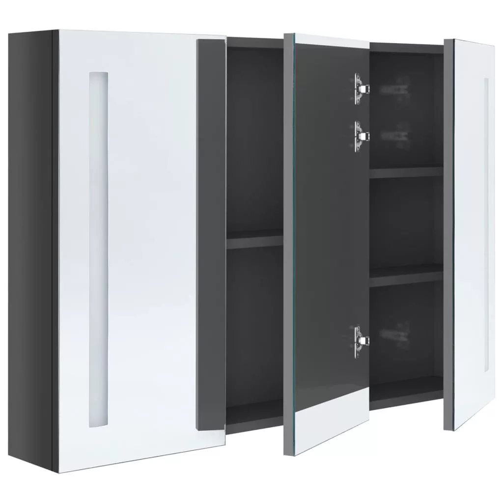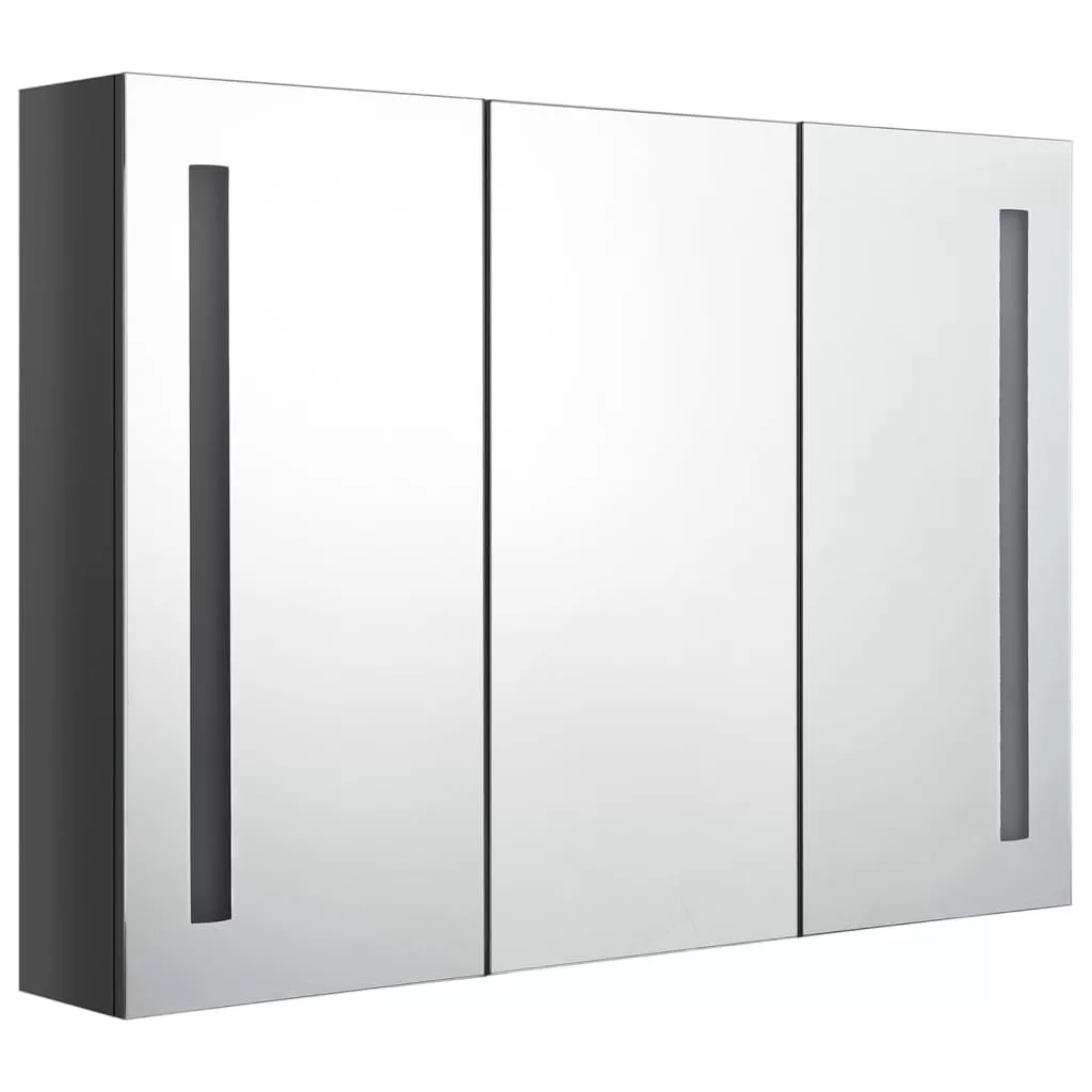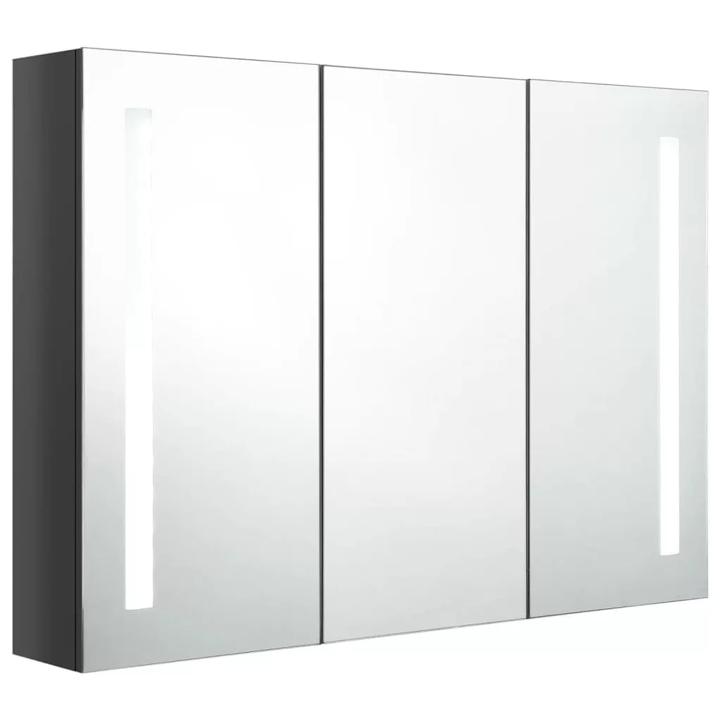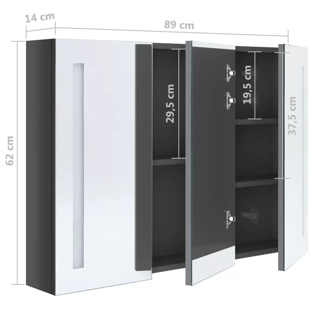 fényes szürke fürdőszobaszekrény LED világítással 89x14x62 cm