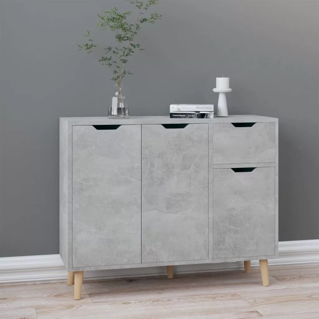 betonszürke szerelt fa tálalószekrény 90 x 30 x 72 cm