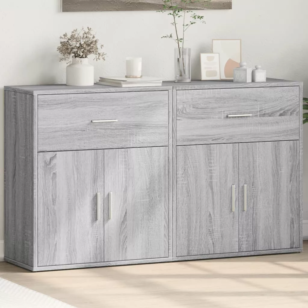 2 db szürke sonoma színű szerelt fa tálalószekrény 60x31x70 cm