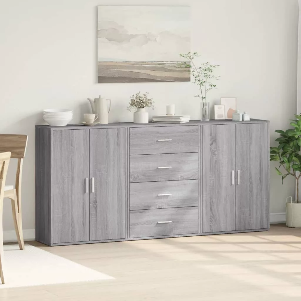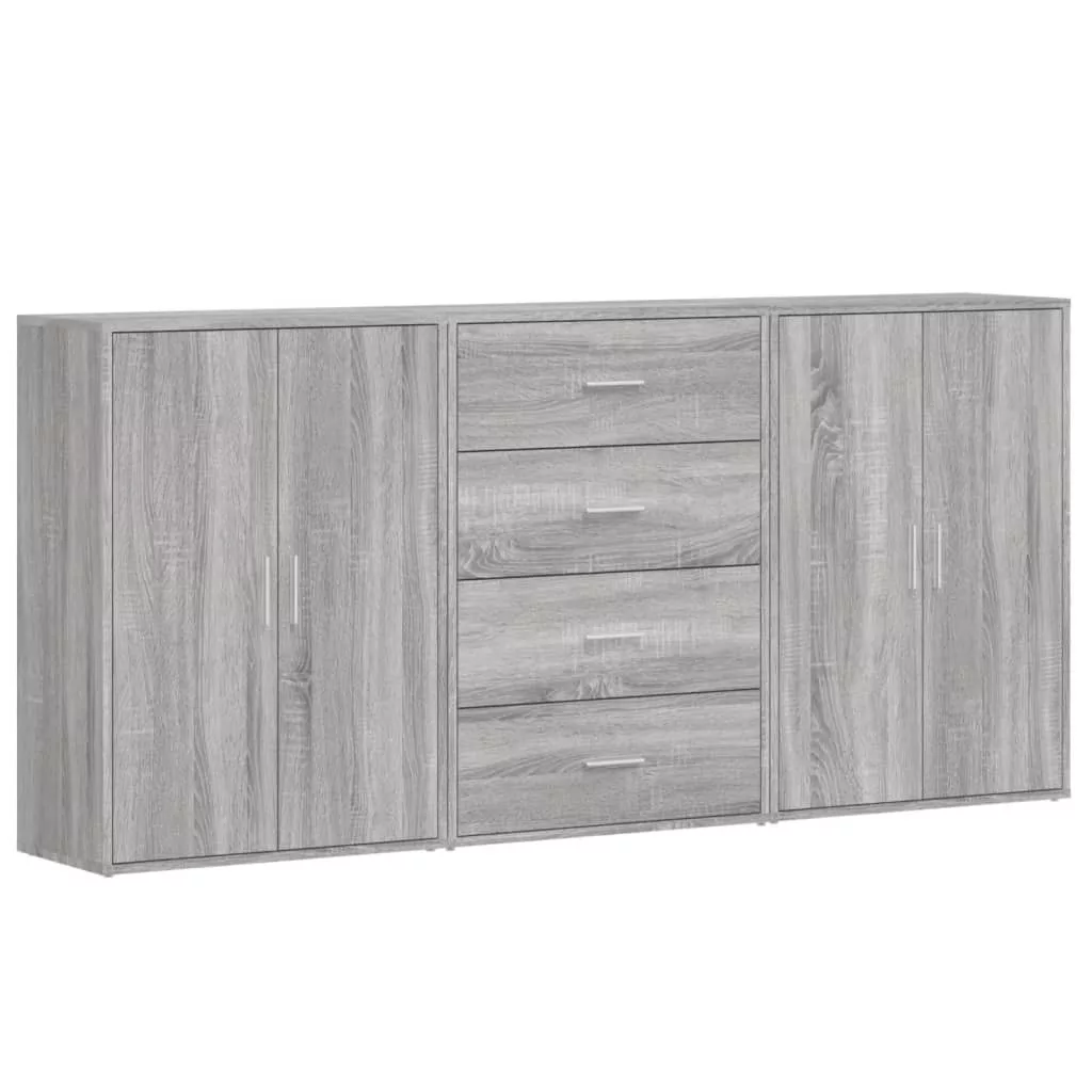 3 db szürke sonoma színű szerelt fa tálalószekrény 60x31x84 cm