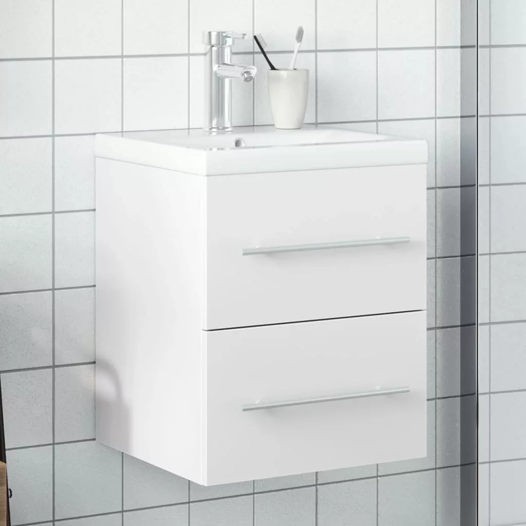 fehér fürdőszobai mosdószekrény beépített mosdókagylóval