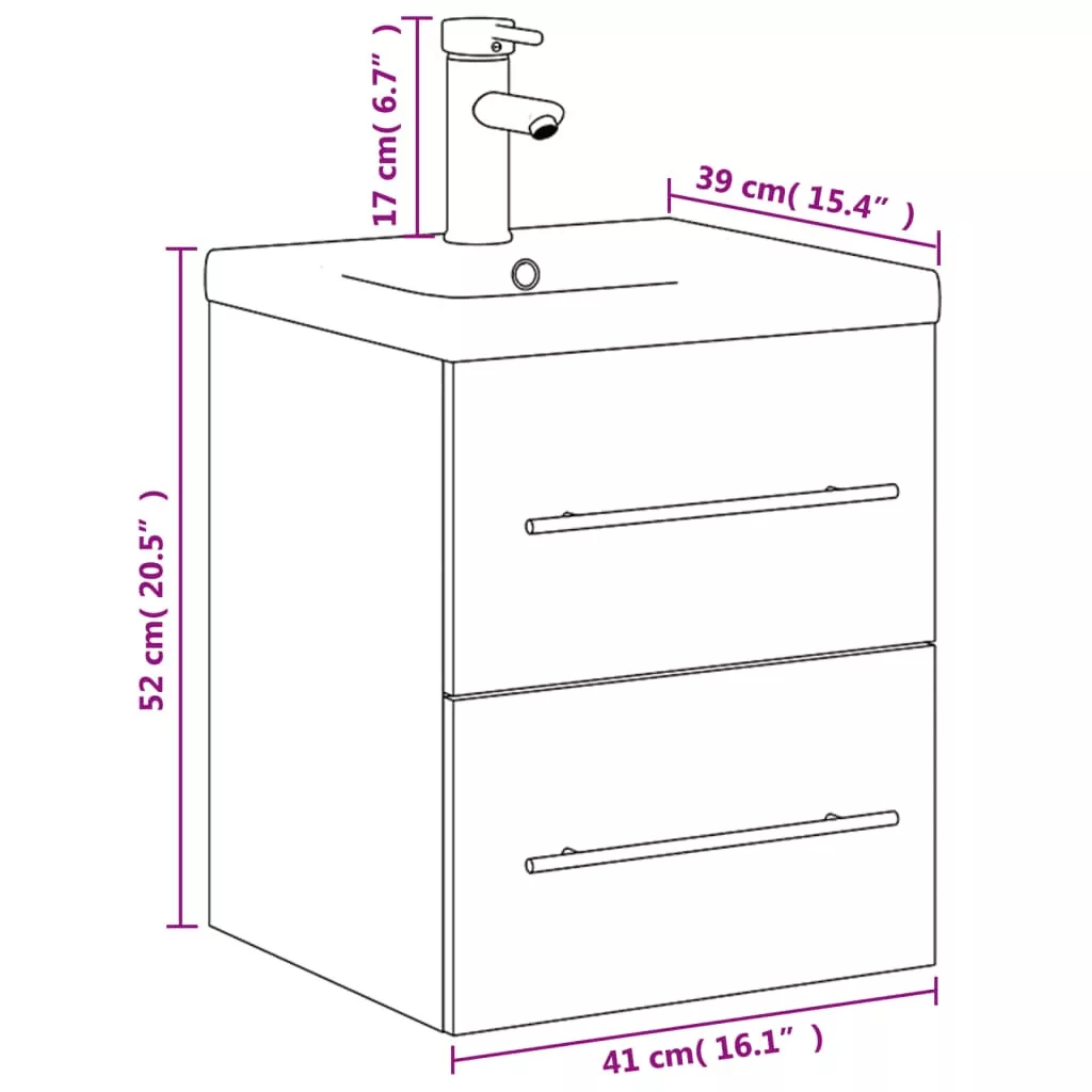 Ez a tágas tárolórésszel rendelkező, stílusos fürdőszobai mosdószekrény beépített mosdóval fürdőszobája nagyszerű kiegészítője lesz, rendezett és lenyűgöző megjelenést kölcsönözve neki! Masszív anyag: A mosdó alatti szekrény szerelt fából készült, ami kivételes minőségű, sima felületű, szilárd, stabil, és ellenáll a nedvességnek.Bőséges tárolóhely: A fürdőszobai mosdóegység 1 fiókkal rendelkezik, amely bőséges helyet biztosít a fürdőszobában lévő holmik tárolására.Falra szerelhető: A fürdőszobaszekrény falra szerelhető, így extra tárolóhelyet biztosít. Ezáltal maximalizálhatja az alapterületet, és tisztán tarthatja a környezetét.Elegáns mosdó: A fürdőszobai mosdókagyló sima kerámiából készült, amely hosszú élettartamú és könnyen tisztítható. A mázas felület modern, mégis elegáns megjelenést kölcsönöz.Praktikus túlfolyó: A mosdókagyló túlfolyásgátlóval lett felszerelve, amely lehetővé teszi a víz kiáramlását, ha túlságosan megtelik. Jó tudni:A falon belüli csavar(ok) és dugó(k) nem alaptartozékok. Keressen és használjon a falának megfelelő csavar(oka)t és dugó(ka)t. Ha bizonytalan, kérje szakember tanácsát. Gondosan olvassa el és kövesse a használati utasítás minden lépését.A csomag a csaptelepet és a túlfolyófunkcióval ellátott nyomógombos leeresztőszelepet tartalmazza.A csaptelep hideg-meleg vizes, és ha meleg vízre van szüksége, vízmelegítőt kell csatlakoztatni hozzá. A gyermekeket felügyelni kell, hogy ne játszhassanak az eszközzel. Tartsd távol a gyermekeket a szerelési területtől. Figyelem: Olvasd el alaposan az utasításokat használat előtt, és tartsd meg későbbi hivatkozásra.