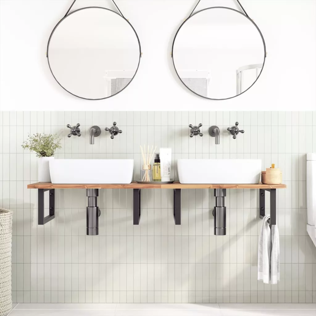 Frissítse fel fürdőszobáját ezzel a fából készült fürdőszobapulttal, és vigyen egy kis rusztikus bájt a berendezésbe! Robusztus és stabil anyag: A tömör akácfa az erősségéről és tartósságáról ismert. Változatos színeinek és egyedi erezetmintájának köszönhetően vonzó megjelenésű. Jó stabilitásának és időjárás-állóságának köszönhetően ideális beltéri és kültéri bútorok készítéséhez.Kezeletlen felület: Mivel ez a munkapult kezeletlen akácfából készült, megőrizheti természetes színét, vagy testreszabhatja festékkel vagy lakkal, hogy megfeleljen ízlésének.Sokoldalú felhasználás: Ez a többfunkciós munkalap különféle talpakkal párosítható számos felhasználási területhez, mint például konyhai munkaállomás, garázs munkapad, fürdőszobai polc, vagy asztallap.Könnyen karbantartható: Sima felületének köszönhetően a munkapult nedves ruhával könnyen tisztítható, és kevesebb gondozást igényel. Jó tudni:Minden termék egyedi, a szín és az erezet változik. A kiszállítás véletlenszerűen történik, biztosítva terméke exkluzivitását és egyediségét.
