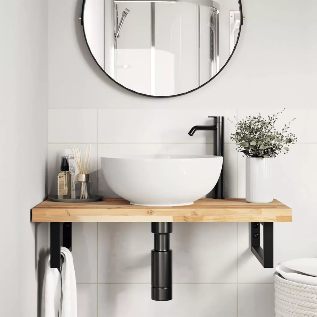 Frissítse fel fürdőszobáját ezzel a fából készült fürdőszobapulttal, és vigyen egy kis rusztikus bájt a berendezésbe! Robusztus és stabil anyag: A tömör akácfa az erősségéről és tartósságáról ismert. Változatos színeinek és egyedi erezetmintájának köszönhetően vonzó megjelenésű. Jó stabilitásának és időjárás-állóságának köszönhetően ideális beltéri és kültéri bútorok készítéséhez.Kezeletlen felület: Mivel ez a munkapult kezeletlen akácfából készült, megőrizheti természetes színét, vagy testreszabhatja festékkel vagy lakkal, hogy megfeleljen ízlésének.Sokoldalú felhasználás: Ez a többfunkciós munkalap különféle talpakkal párosítható számos felhasználási területhez, mint például konyhai munkaállomás, garázs munkapad, fürdőszobai polc, vagy asztallap.Könnyen karbantartható: Sima felületének köszönhetően a munkapult nedves ruhával könnyen tisztítható, és kevesebb gondozást igényel. Jó tudni:Minden termék egyedi, a szín és az erezet változik. A kiszállítás véletlenszerűen történik, biztosítva terméke exkluzivitását és egyediségét.