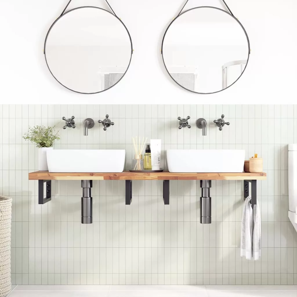 Frissítse fel fürdőszobáját ezzel a fából készült fürdőszobapulttal, és vigyen egy kis rusztikus bájt a berendezésbe! Robusztus és stabil anyag: A tömör akácfa az erősségéről és tartósságáról ismert. Változatos színeinek és egyedi erezetmintájának köszönhetően vonzó megjelenésű. Jó stabilitásának és időjárás-állóságának köszönhetően ideális beltéri és kültéri bútorok készítéséhez.Kezeletlen felület: Mivel ez a munkapult kezeletlen akácfából készült, megőrizheti természetes színét, vagy testreszabhatja festékkel vagy lakkal, hogy megfeleljen ízlésének.Sokoldalú felhasználás: Ez a többfunkciós munkalap különféle talpakkal párosítható számos felhasználási területhez, mint például konyhai munkaállomás, garázs munkapad, fürdőszobai polc, vagy asztallap.Könnyen karbantartható: Sima felületének köszönhetően a munkapult nedves ruhával könnyen tisztítható, és kevesebb gondozást igényel. Jó tudni:Minden termék egyedi, a szín és az erezet változik. A kiszállítás véletlenszerűen történik, biztosítva terméke exkluzivitását és egyediségét.